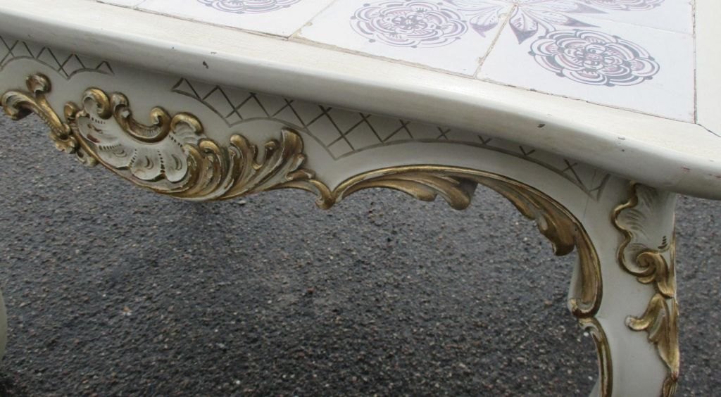 Ny rococo flisebord i hvidmalet fyrretræ med forgyldninger, Danmark, 19/20. årh.