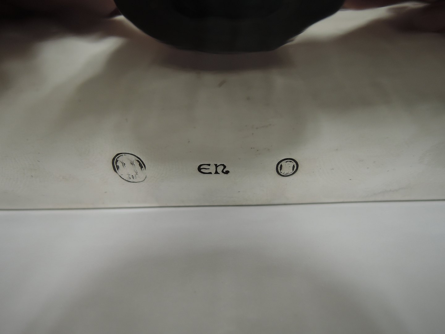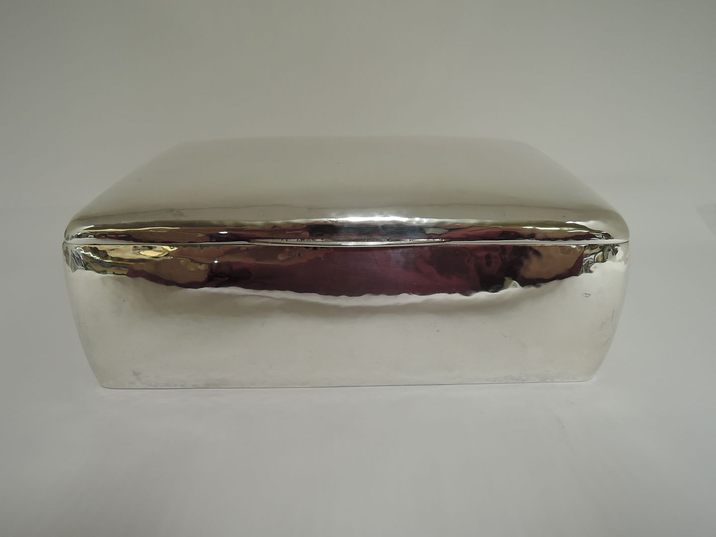 Evald Nielsen. Sølv (830). Hammerslået cigar æske. Længde 21 cm. Bredde 14 cm. Produceret 1918.