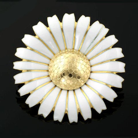 Georg Jensen Gilded Sterling Silver Marguerit / Daisy Brooch i with white enamel - Margrethe II