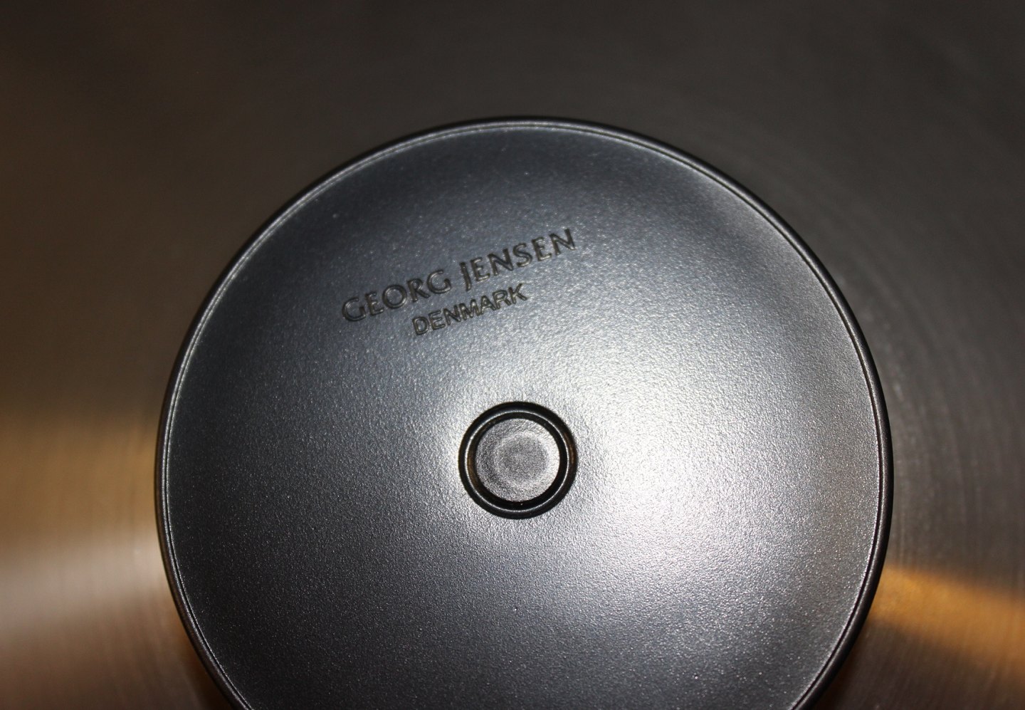 Skål i børstet stål med plastik fod af Georg Jensen Denmark.