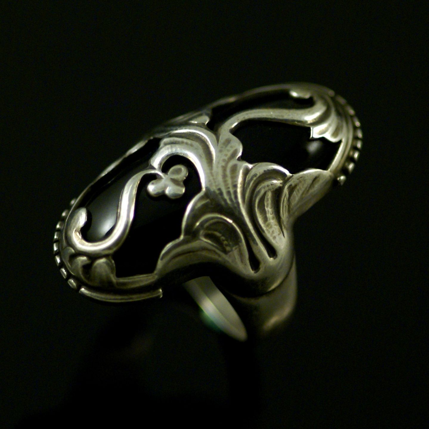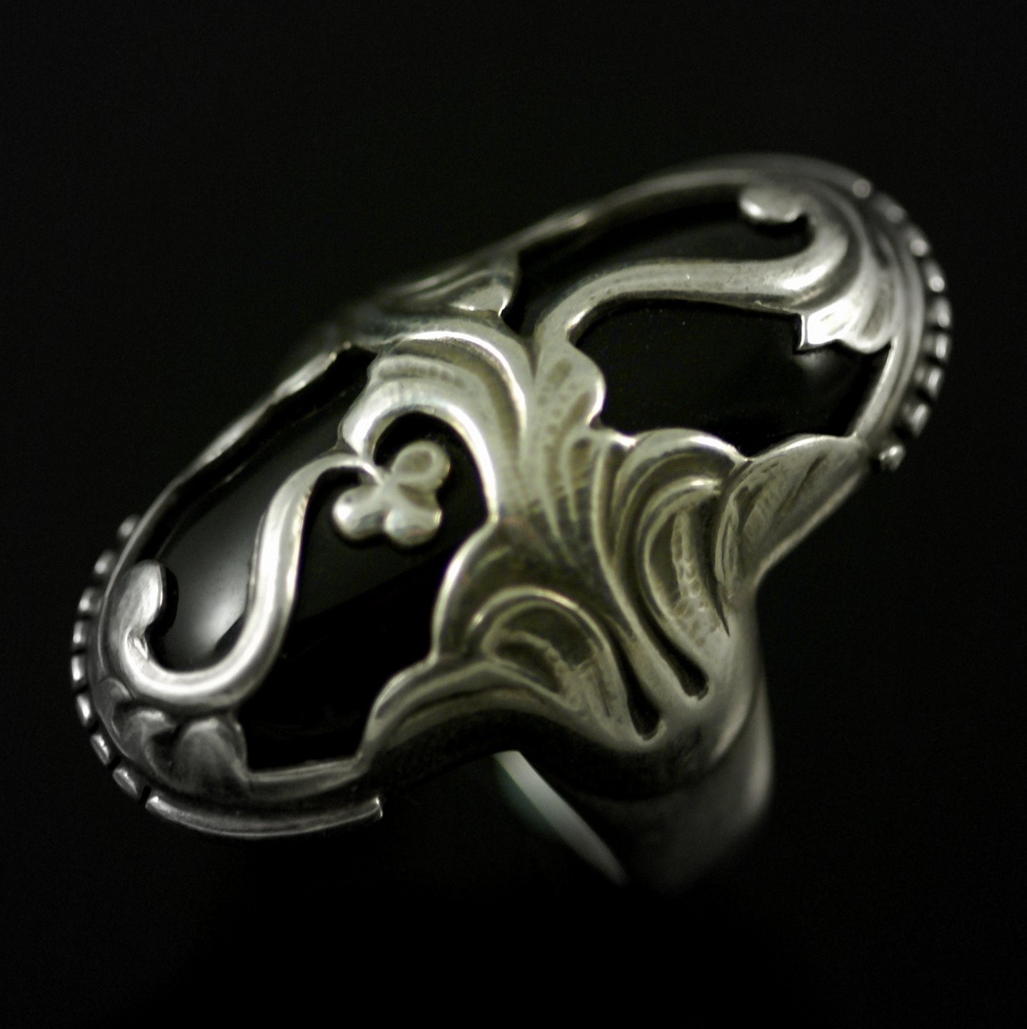 Georg Jensen. Ring i sterling sølv med sort agat #18