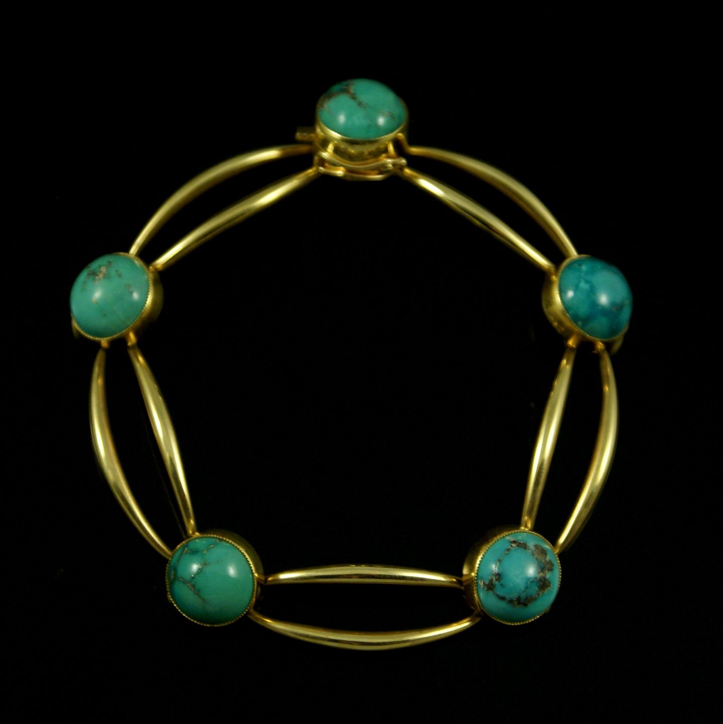 Hans Hansen Armbånd i 14k guld med turkiser #203. 1960erne