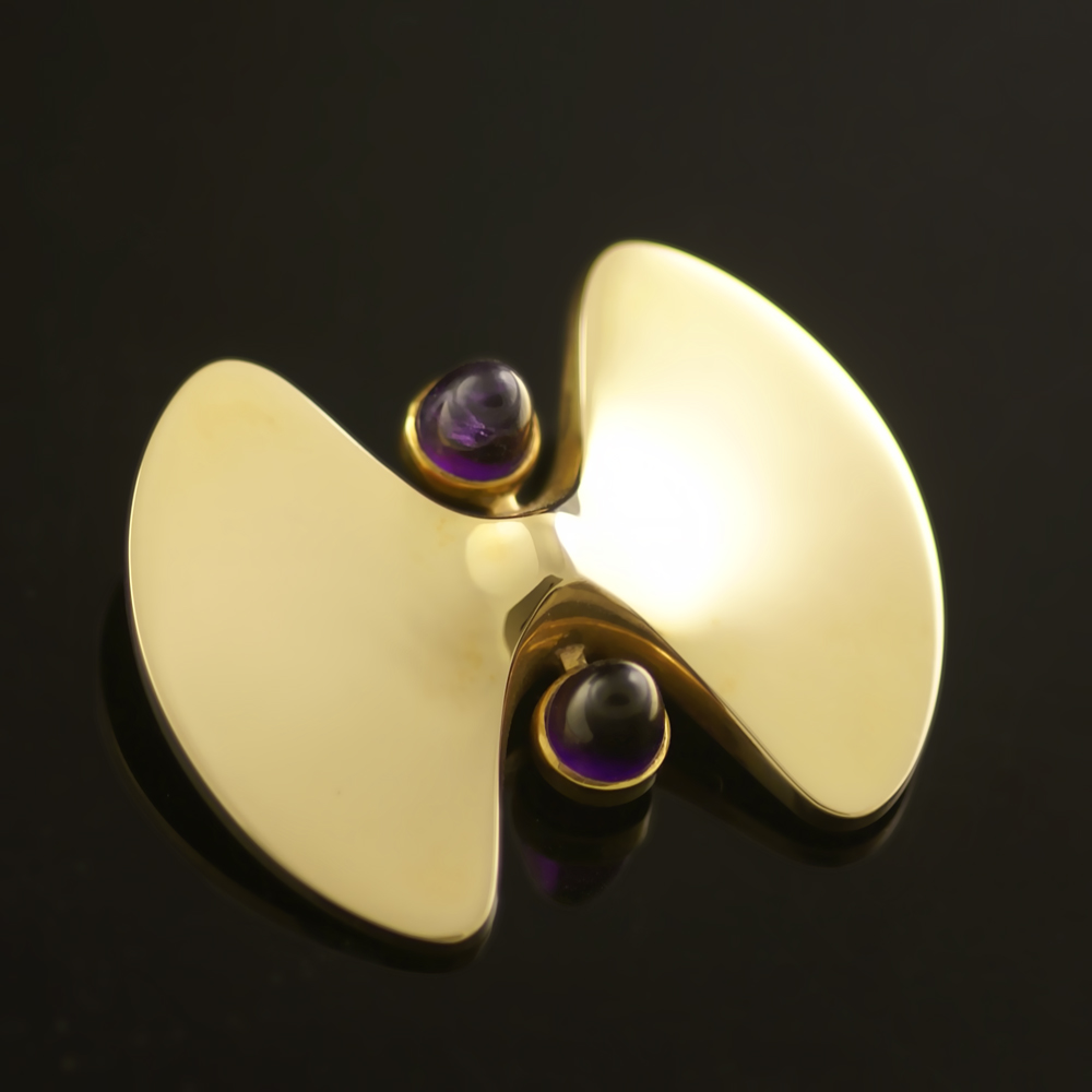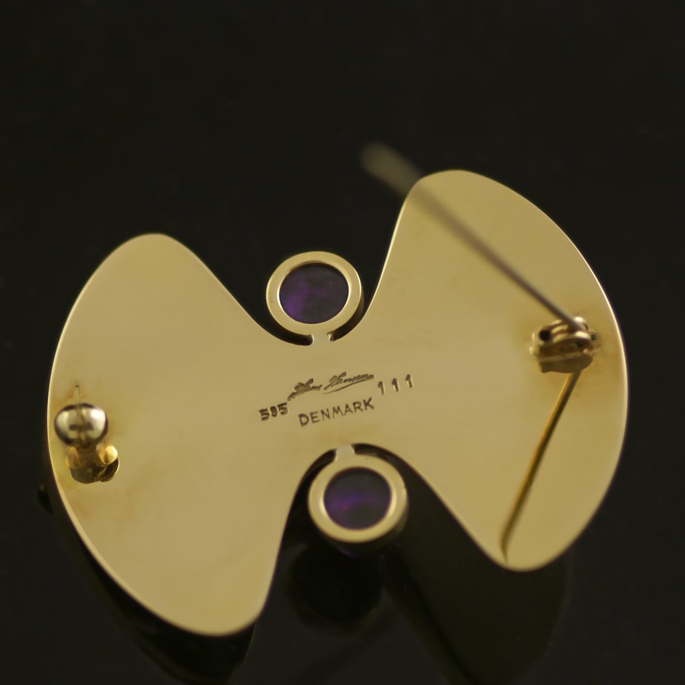 Hans Hansen. Broche i 14k Guld med Ametyst #111.