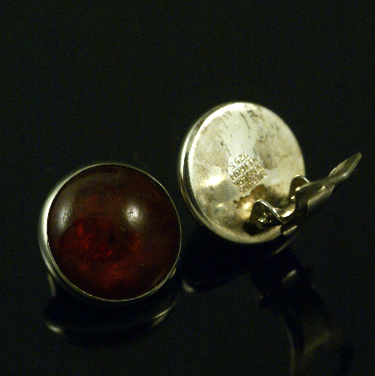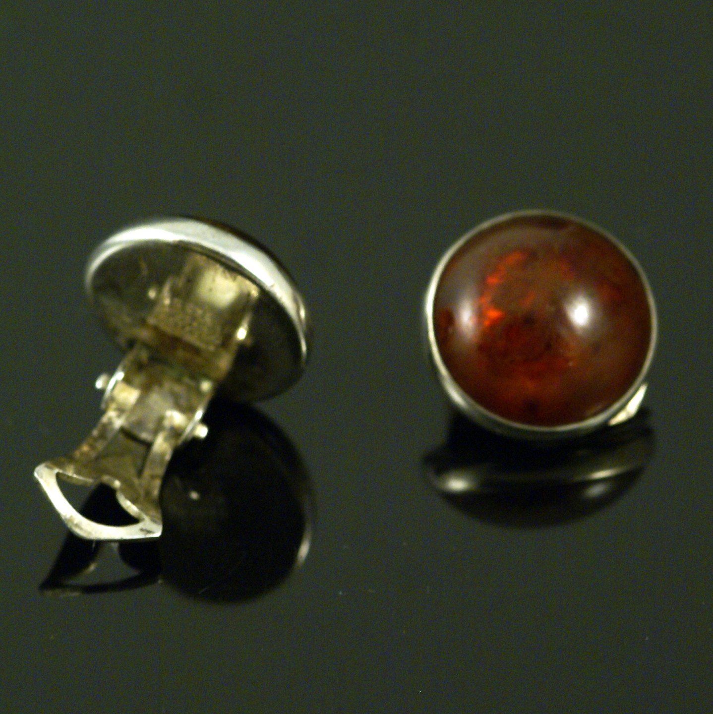N.E. From Øreclips i Sterling sølv med rav. 1960erne.