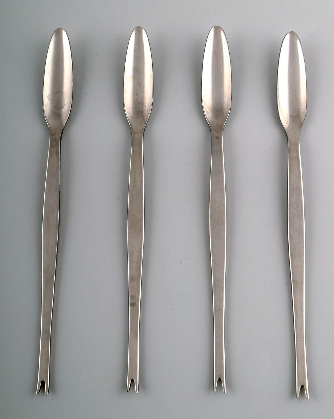 4 Gense, Sverige, hummer/skaldyrsbestik i moderne design. Rustfrit stål.