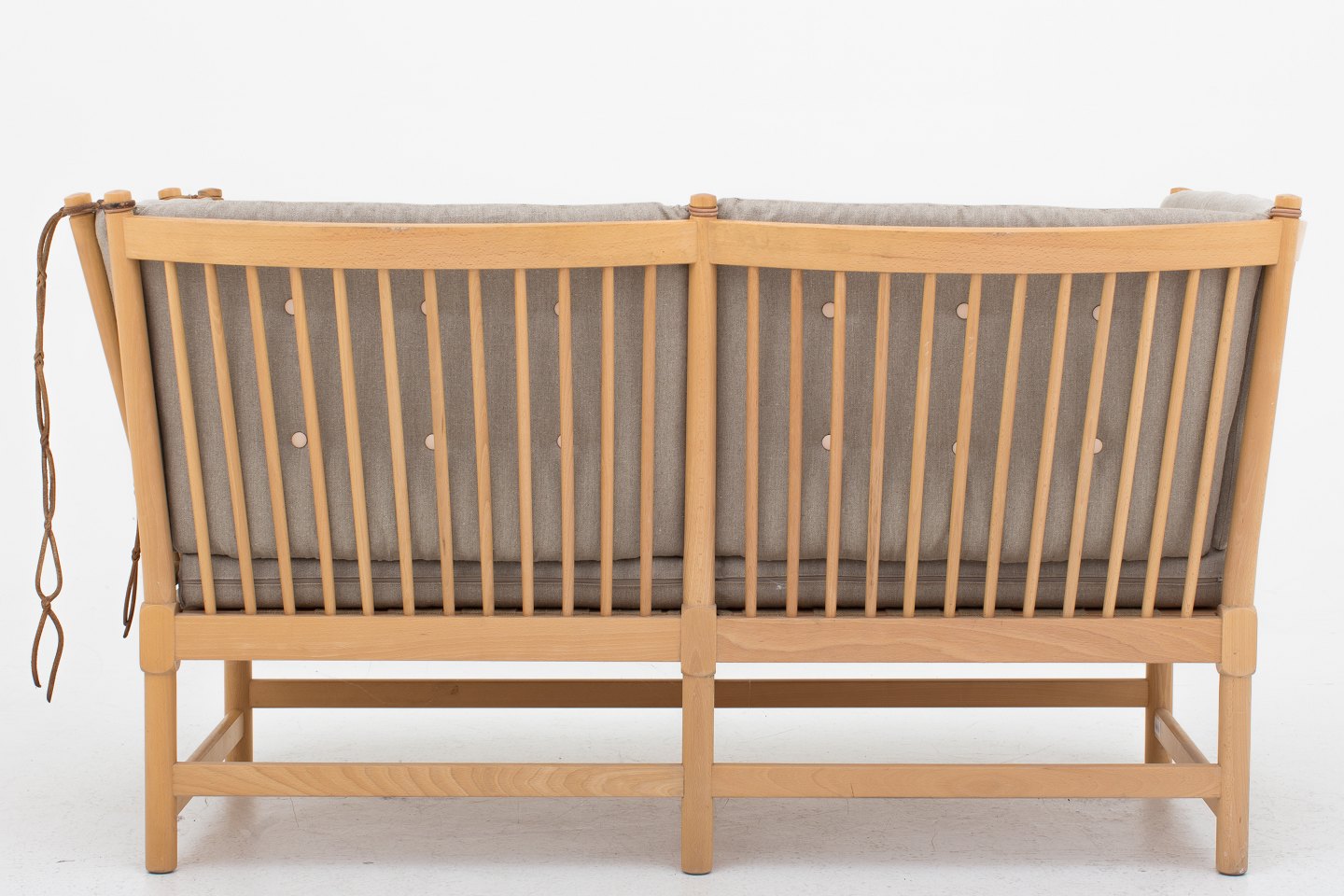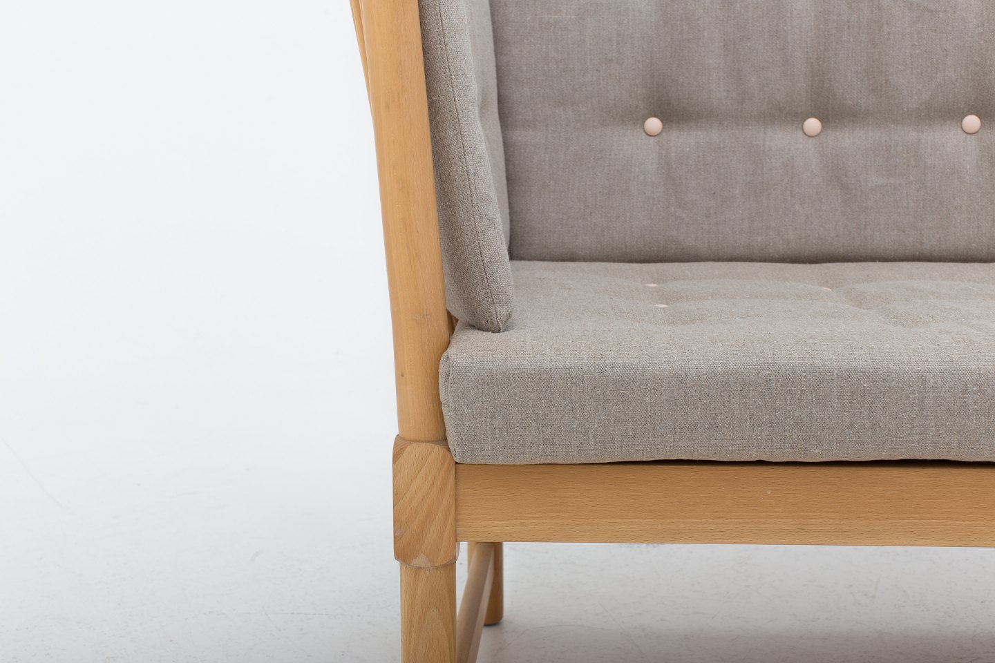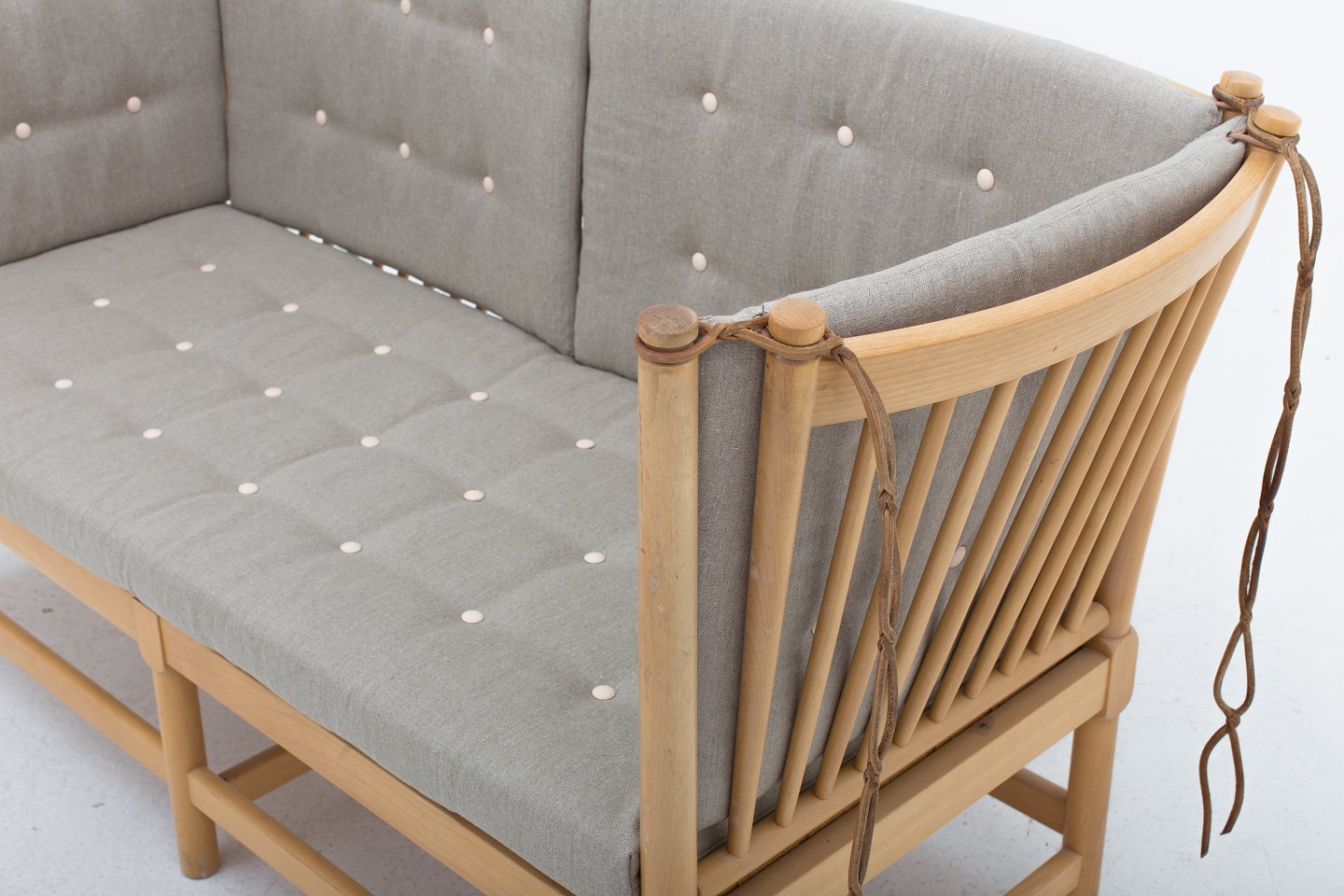 BM 1789 - Nybetrukket Tremmesofa i bøg med nye hynder i vasket kanvas og knapper i vegetallæder. KLASSIK tilbyder polstring af Tremmesofaen med stof eller læder efter eget valg. Kontakt os venligst for mere information