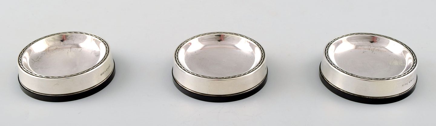 Vera Ferngren for GAB (Guldsmedsaktiebolaget) Tre flaskebakker i sølv og bakelit.