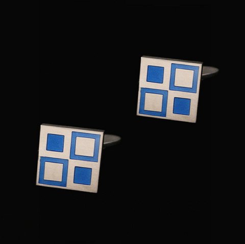 Text zugänglich auf Dänische: Georg Jensen Manchetknapper i sterling sølv med emalje #87 - Mosaic - Tegnet af Magnus Stephensen