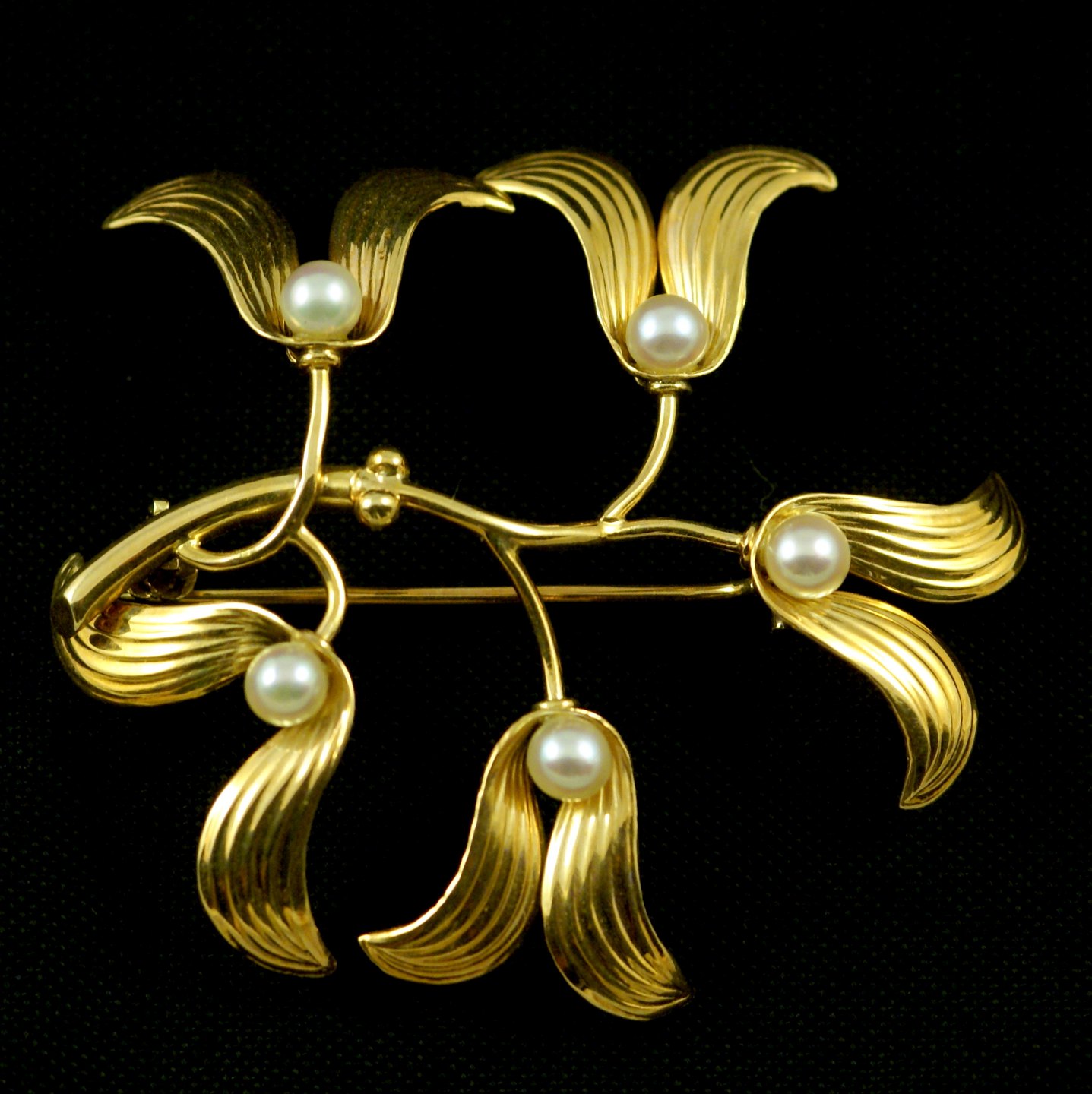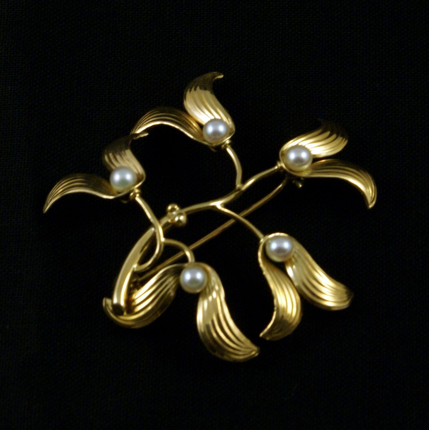 Viggo Wollny. Broche i 14k Guld med kulturperler.