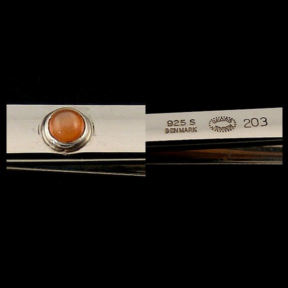 Text zugänglich auf Dänische: Georg Jensen Slipsenål i sterlingsølv med orange månesten #203