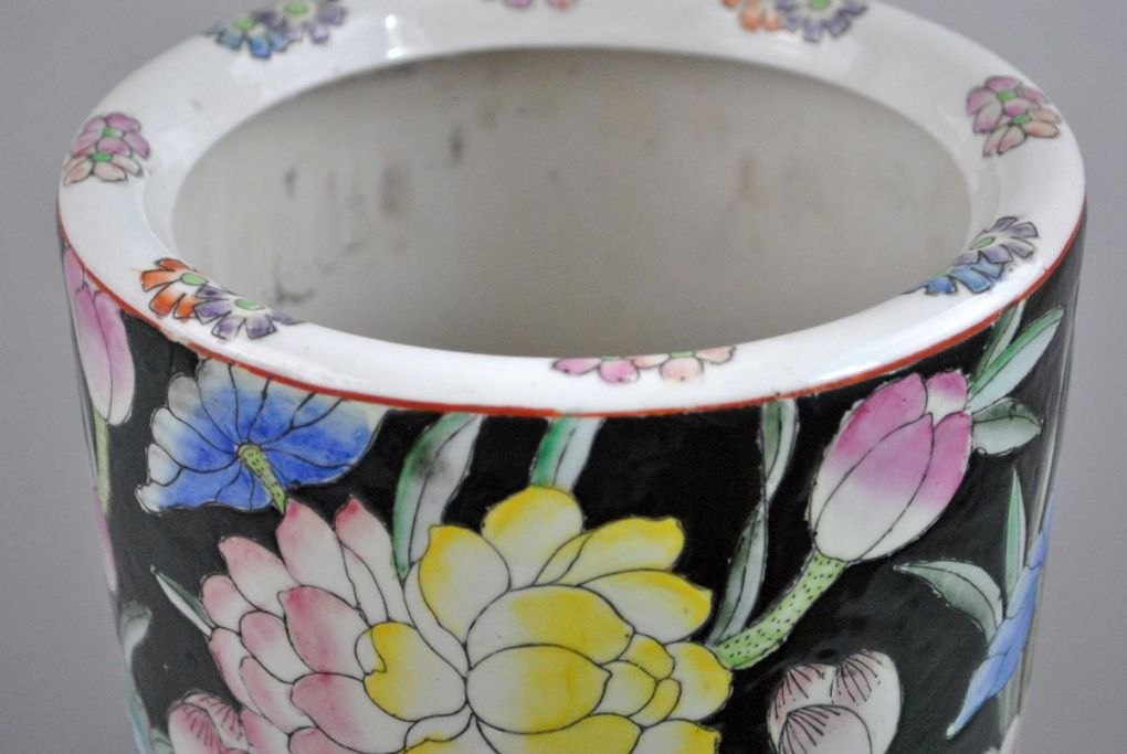 Paraply stativ. Kina. Dekoreret med blomster. 20. årh. H: 47. Dia.: 22 cm.