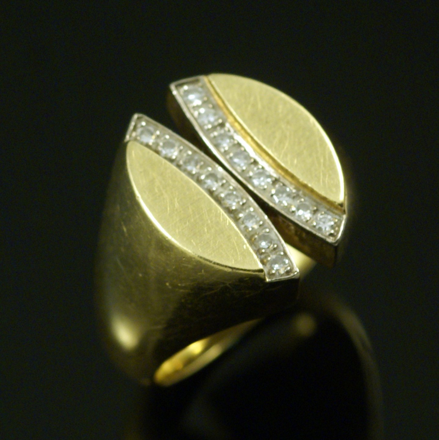 A. Michelsen. Ring i 18k guld med 16 Diamanter.