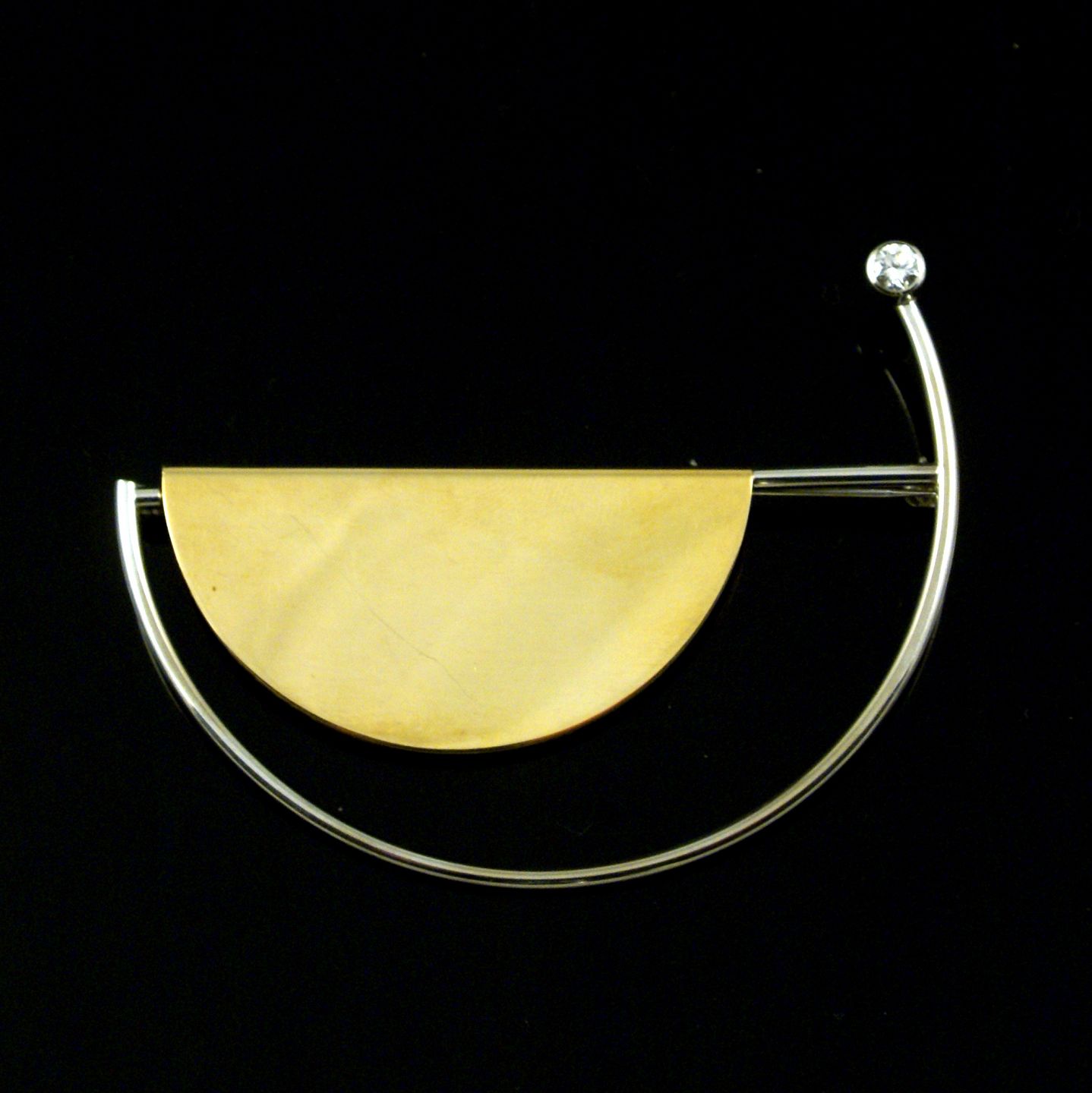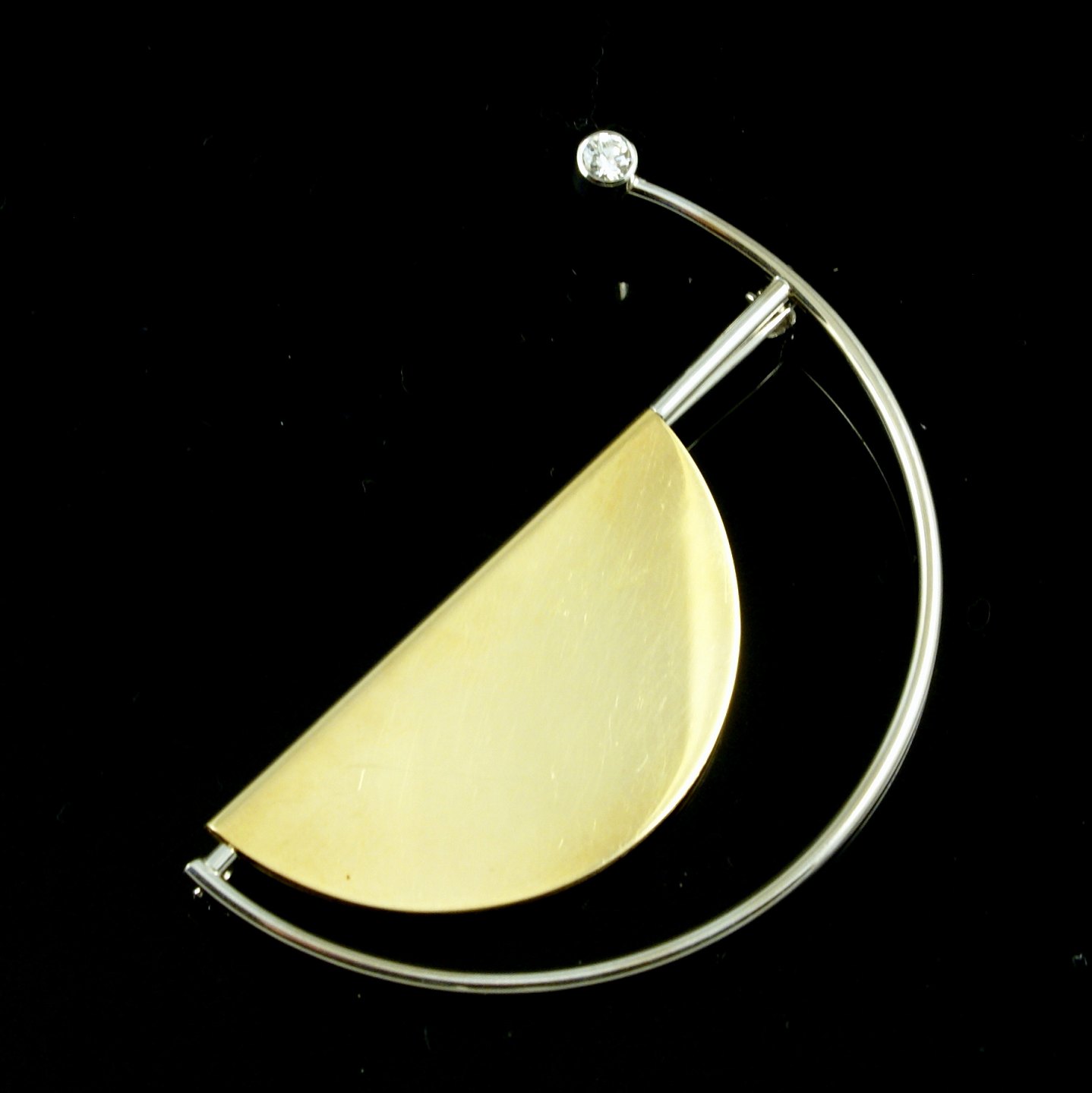 Hans Hansen broche i 14k guld og hvidguld med diamant 0,25ct.