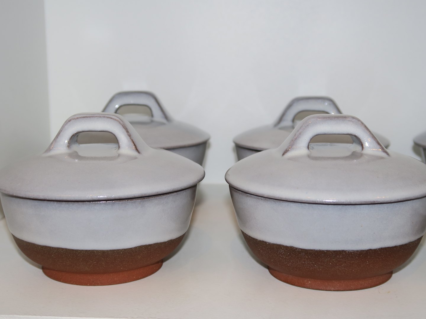 En skål har et lille skår på underkanten (kr. 1000,-)- se billede - ellers perfekt stand uden fejl.