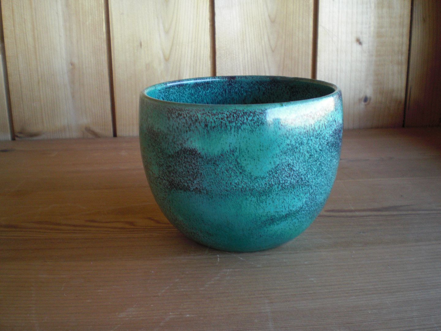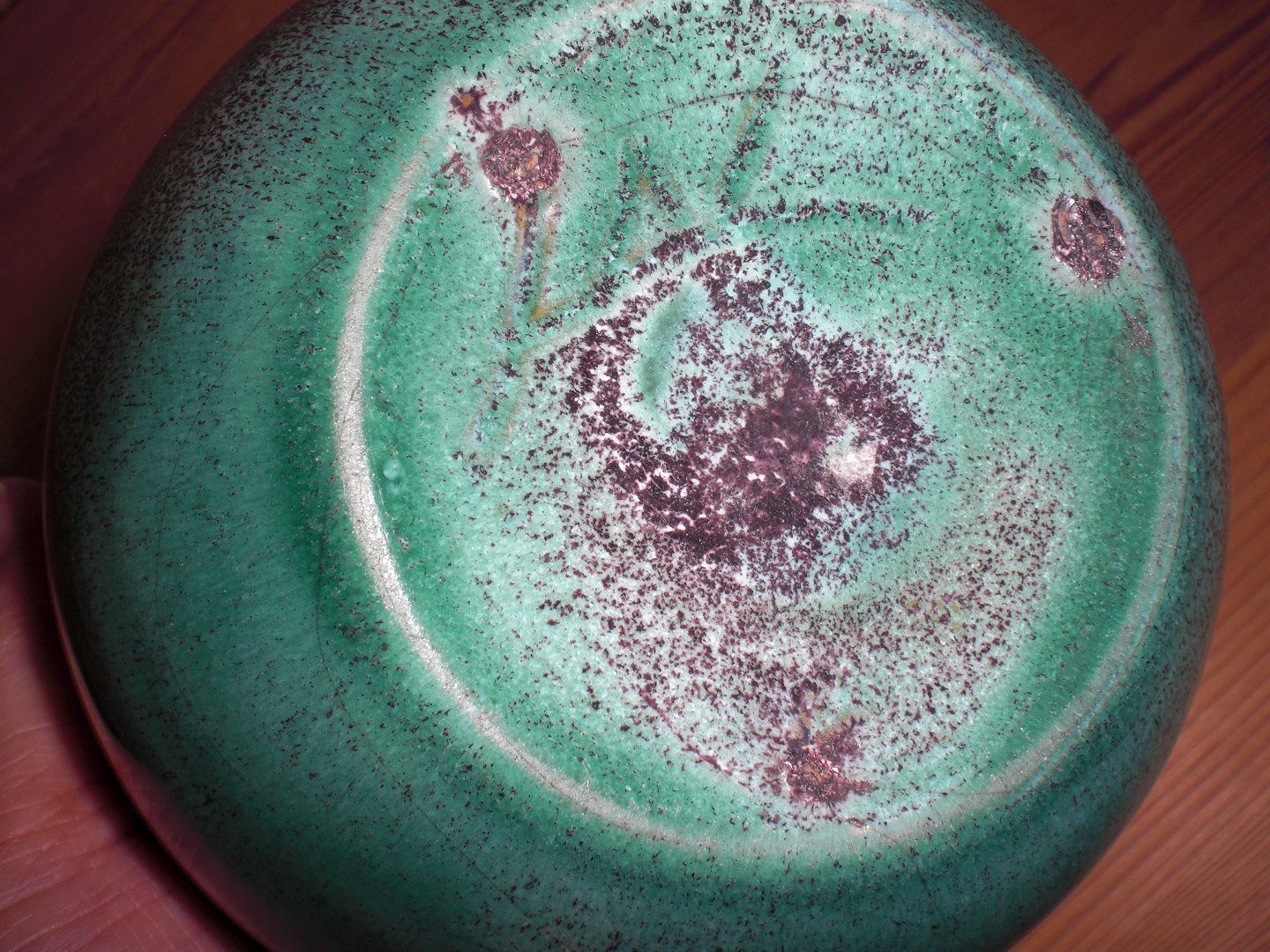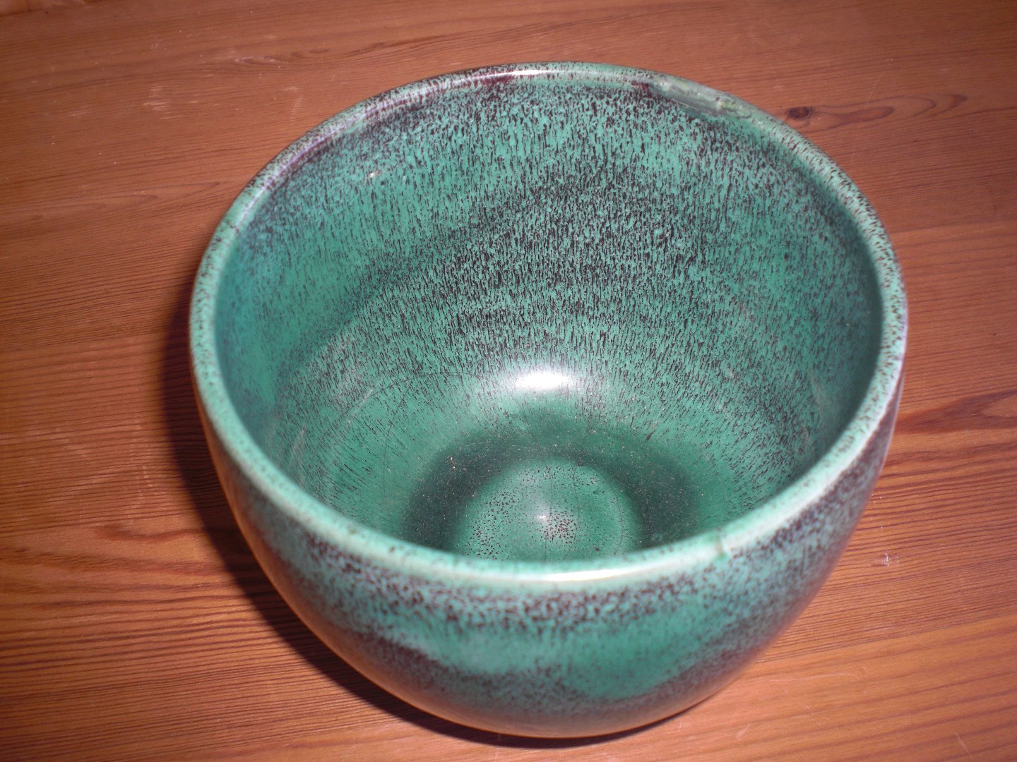 Svend Hammershøi (1873 - 1949) skål fra Kähler i sort/grøn dobbeltglasur - ca 1940. Højde:9 cm. - bredeste diametr: 12 cm. I fin stand.