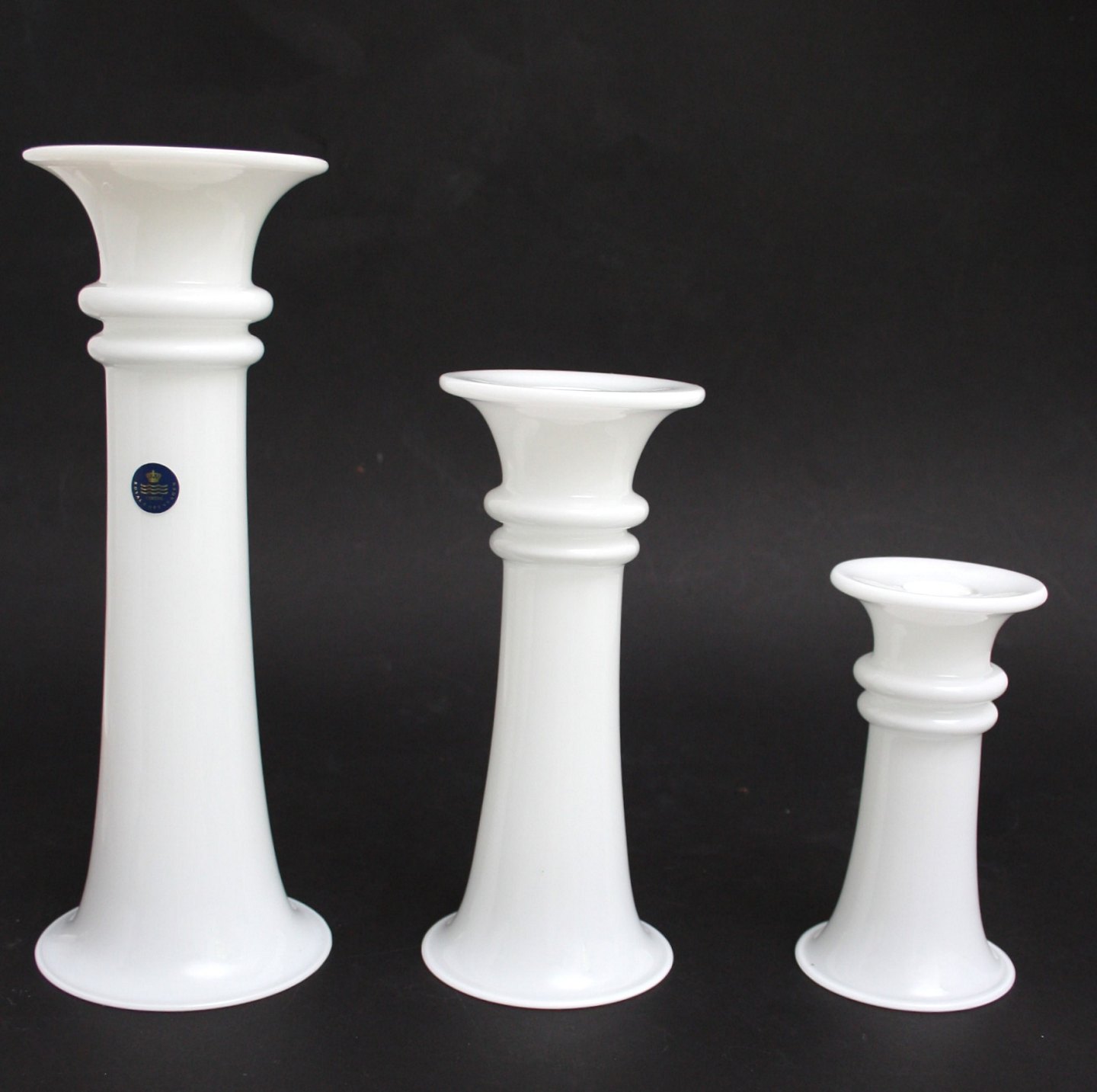 Holmegaard, Harmony opalinehvid vendbare vaser/lysestager designet af Michael Bang 1995.