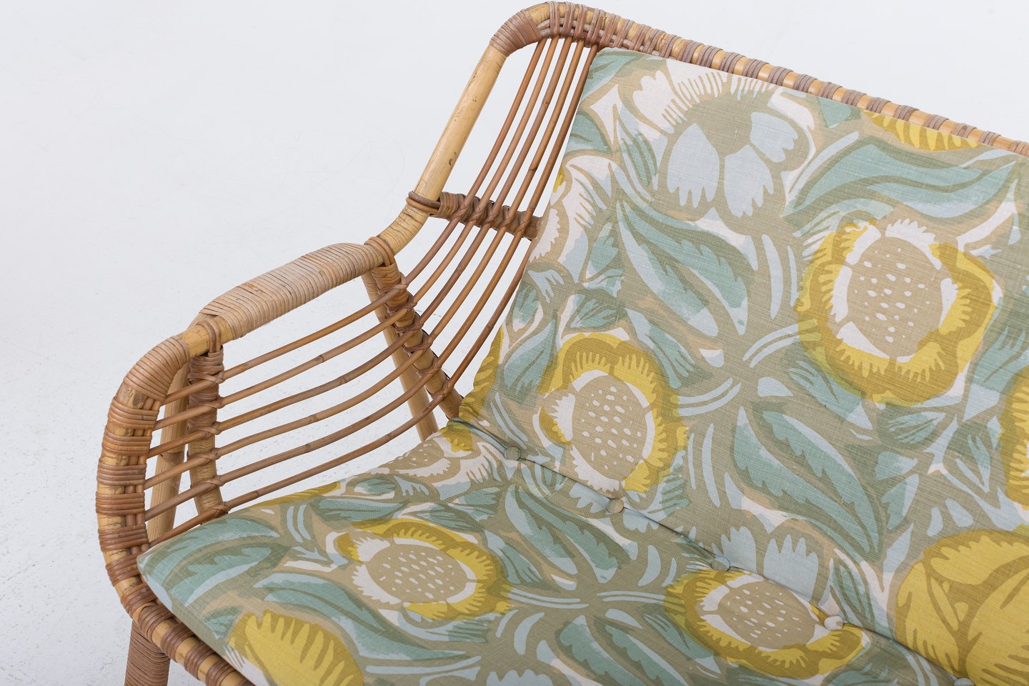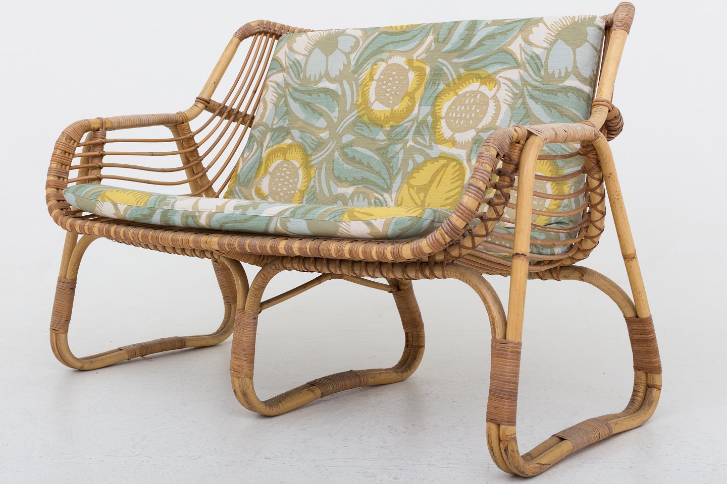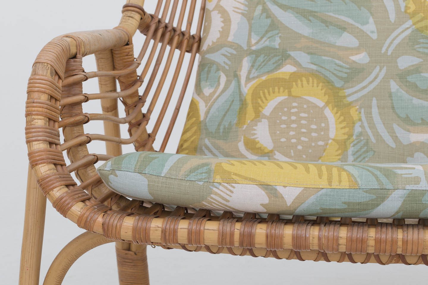 Kurvesofa med nye hynder i "La Foret, Lemon". Se matchende lænestole med varenummer 1035382