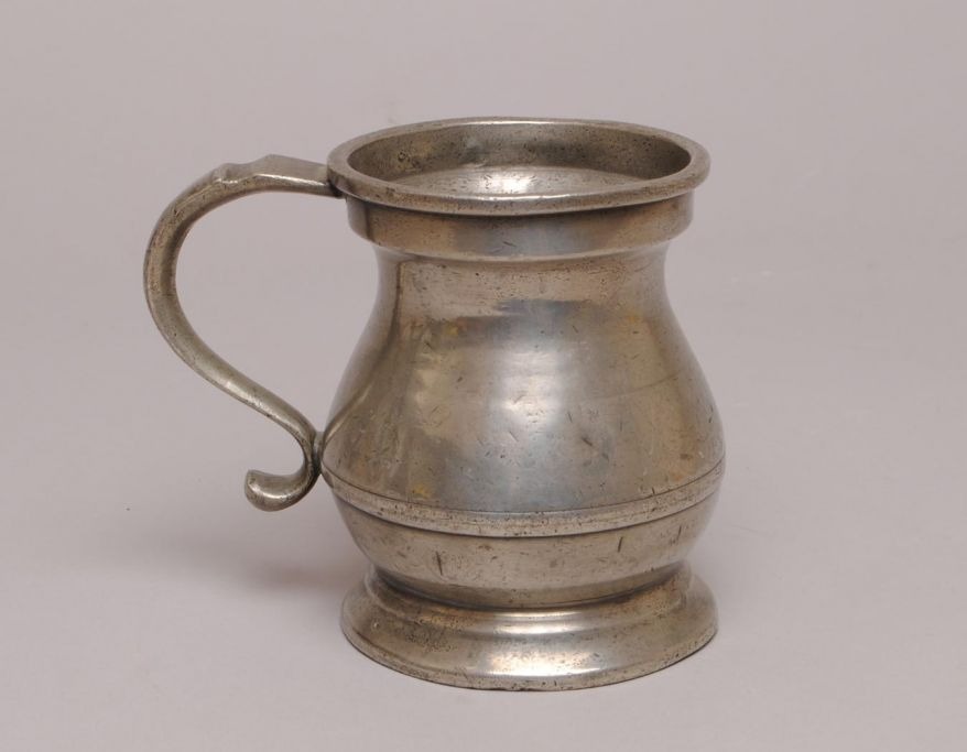 Pewter mug from Kent, late 1800's. Stamped: VR 354, 1/2 pint. H: 10 cm.