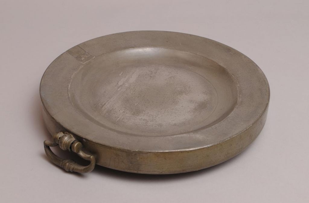 Varmetallerken af tin, London, 18. årh. Stemplet: London. Ø: 23 cm.