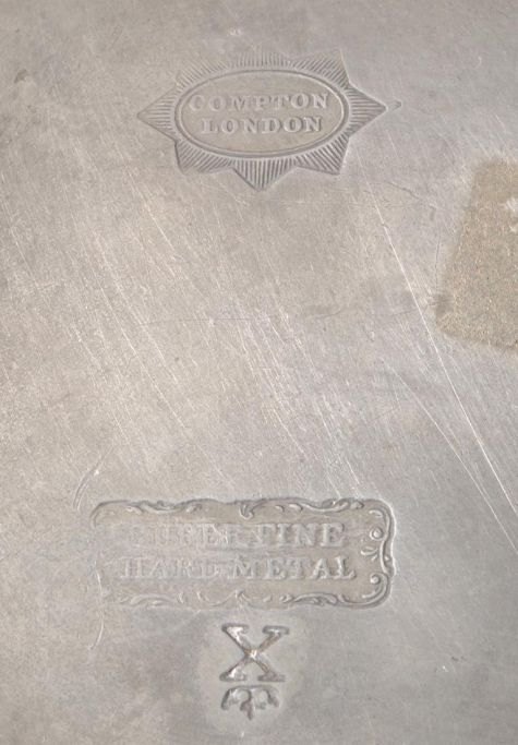 Varmetallerken af tin, 1763 - 1795, Compton, London. Stemplet. Superfine Hardmetal. Dia.: 24 cm.