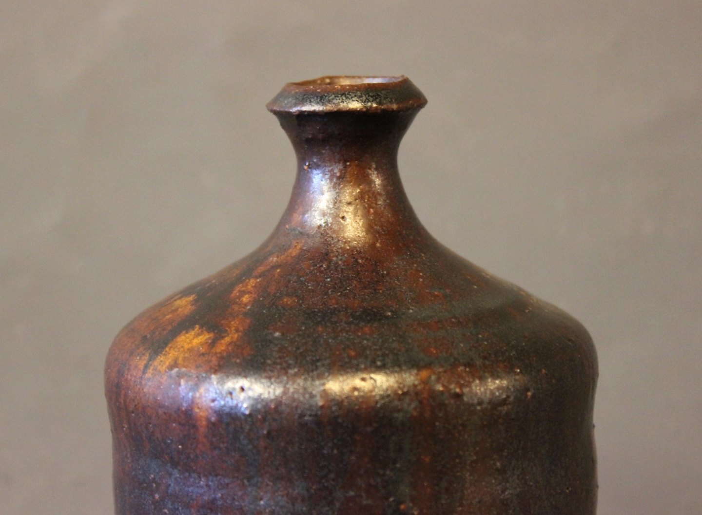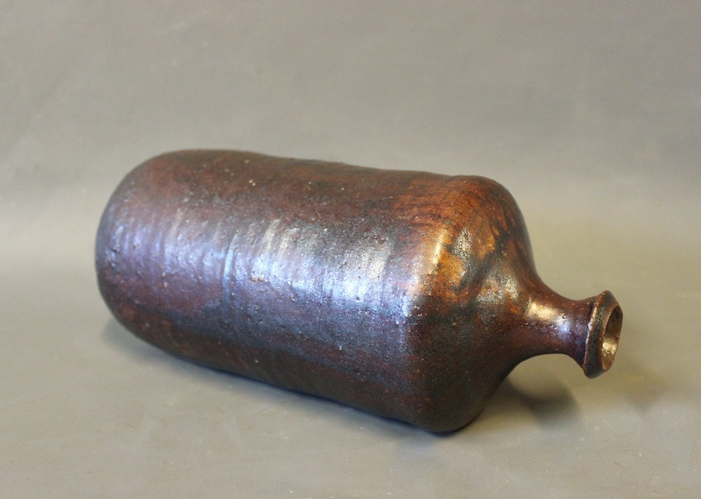 Mørkerød keramik flaske/vase i flot brugt stand.