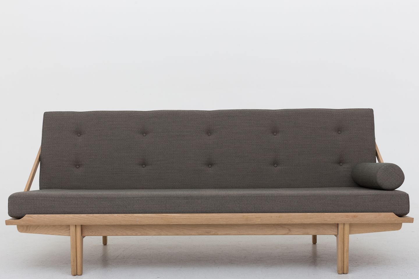 Daybed med stel i eg og hynder i Foss 952.