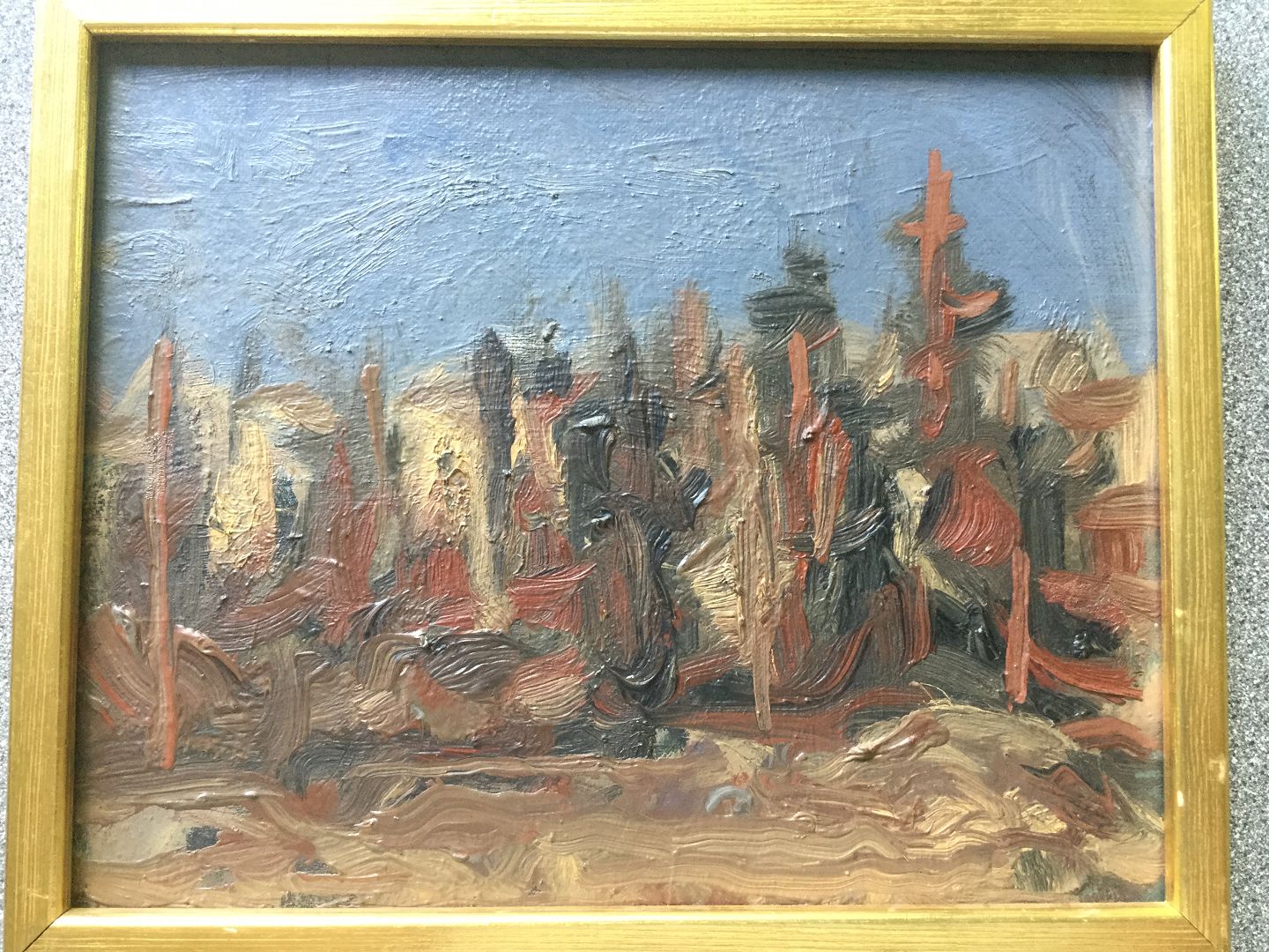 Maleri af Knut H. Larsen, Sverige - Skovparti 1978.