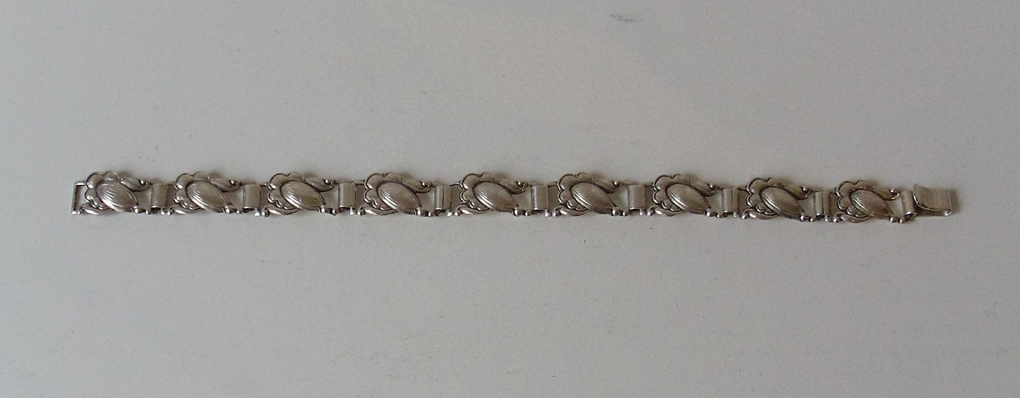 Smukt leddelt sølv armbånd i skønvirke stil.