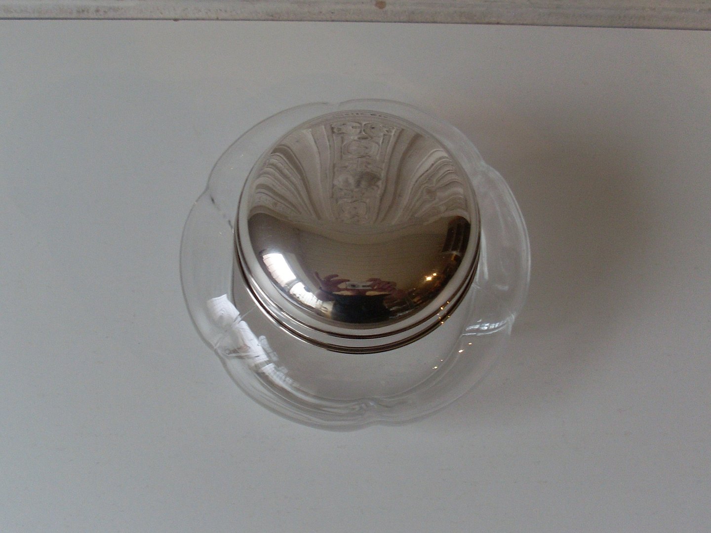 Bon bonnier i glas med låg af sterlingsølv