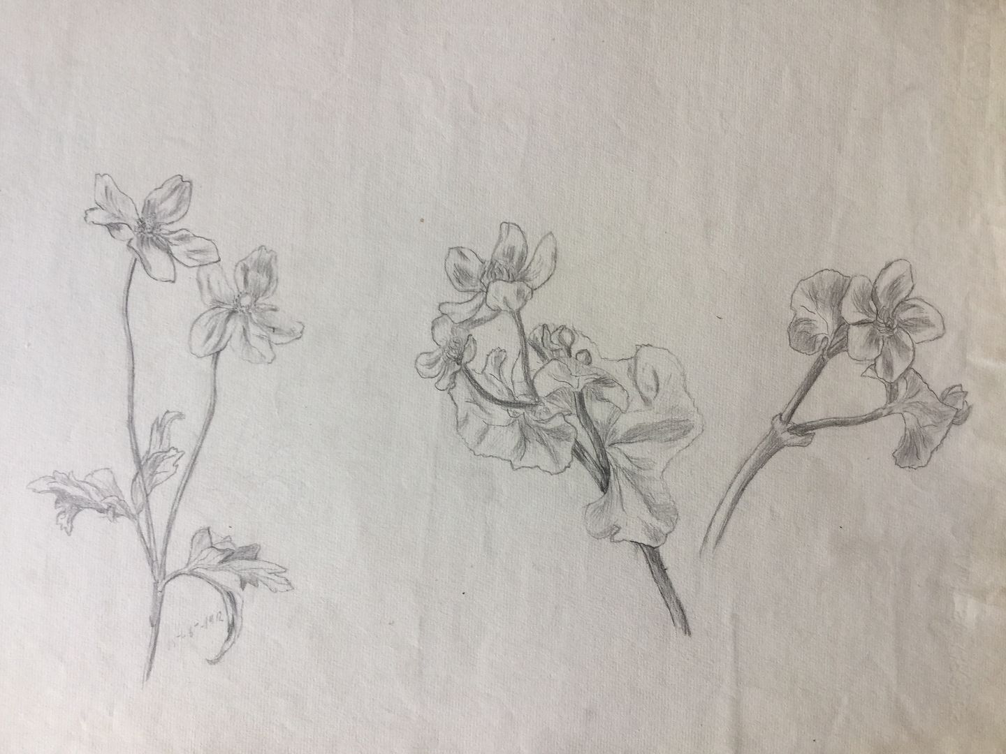 Text available in Danish: Tegning af Ella Pedersen - Skitse af blomster 1912.
