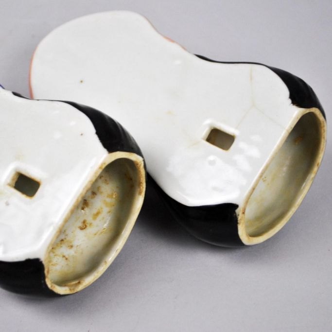 Par antikke hænge japanske vaser. ca. 1900. Bemalet porcelæn. Mand og kvinde i dragter. Højde.: 15 cm.