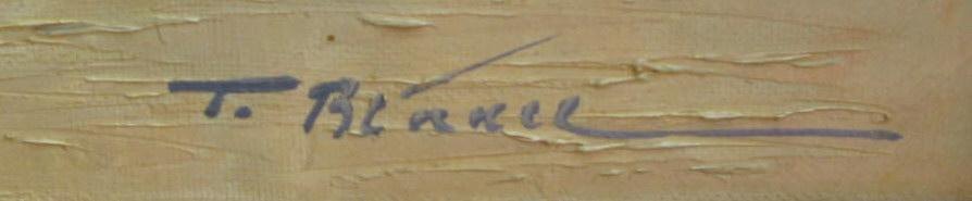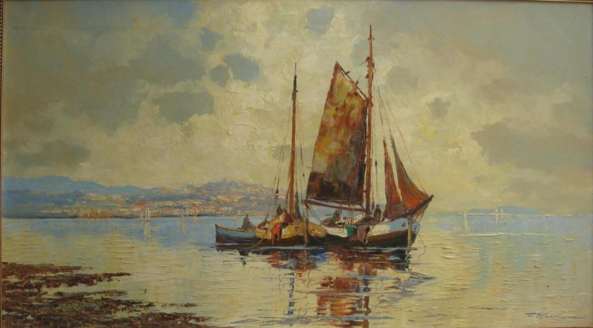 French artist (20th century): Fishing boats near the coast. Oil on canvas. Signed: T. Bl ... 45 x 80 cm.