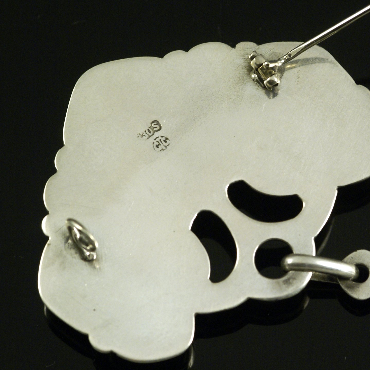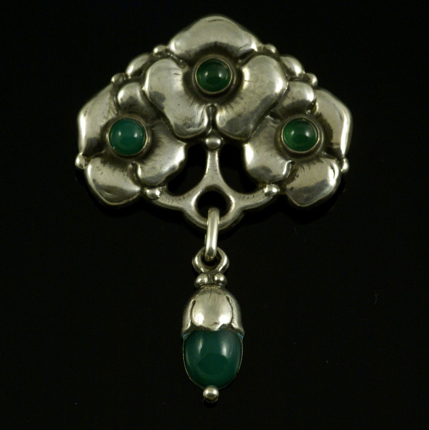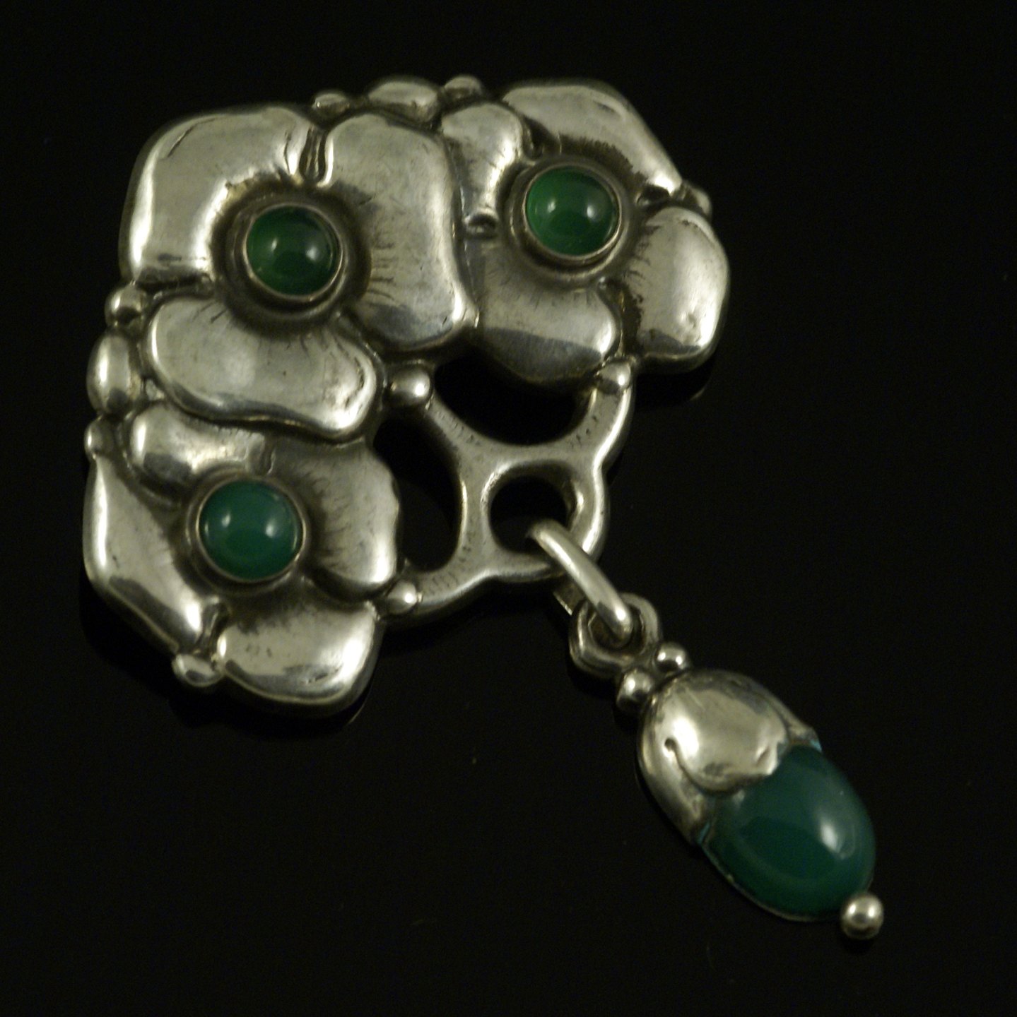 Grann & Laglye. Skønvirke Broche i Sølv med grøn agat.