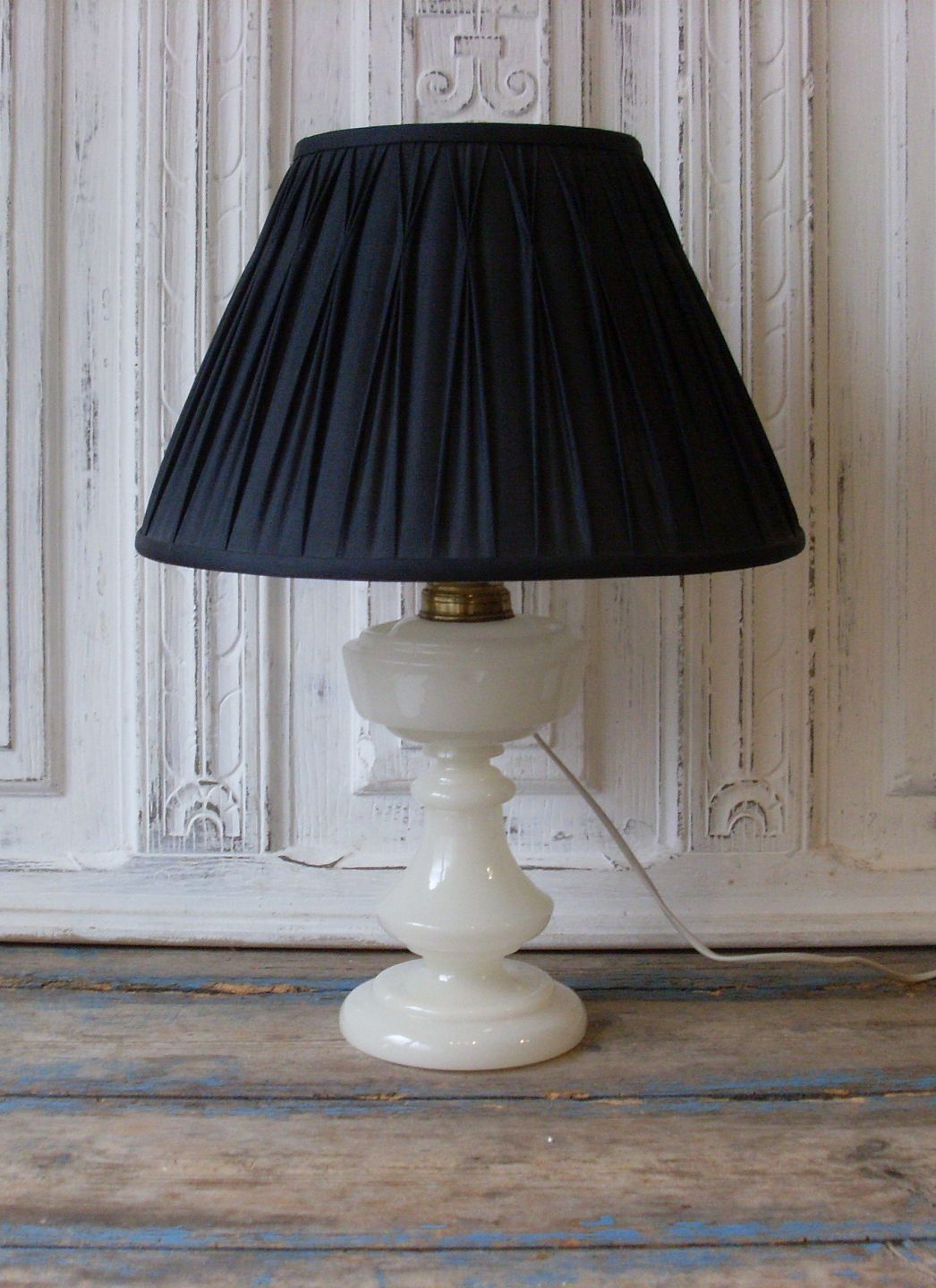 Hvid opaline olielampe omlavet til el.