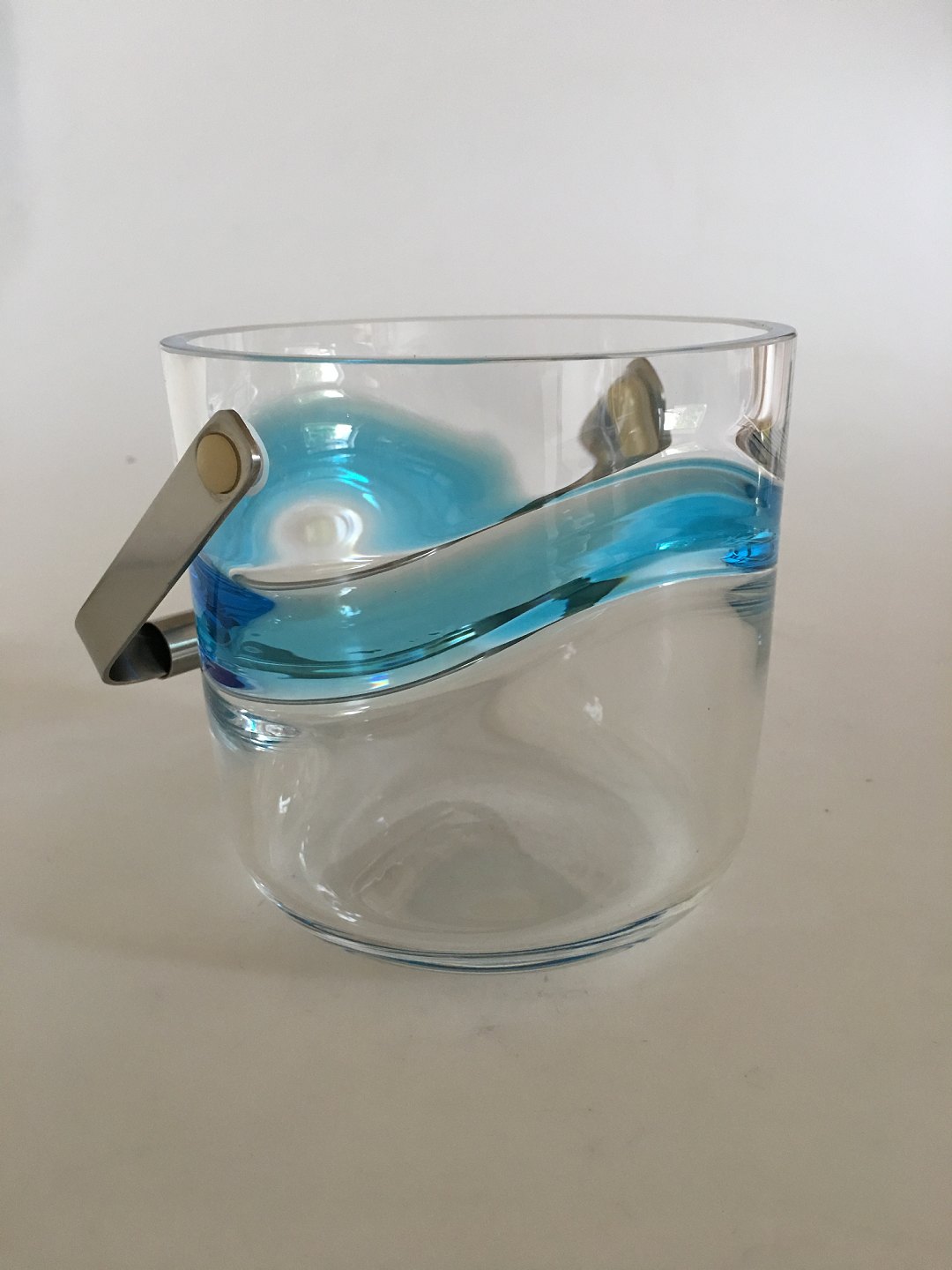 Blå Time Isspand i glas fra Holmegaard. 13 cm diameter. 13 cm høj. Designet 1971 af Christer og Christel Holmgren.