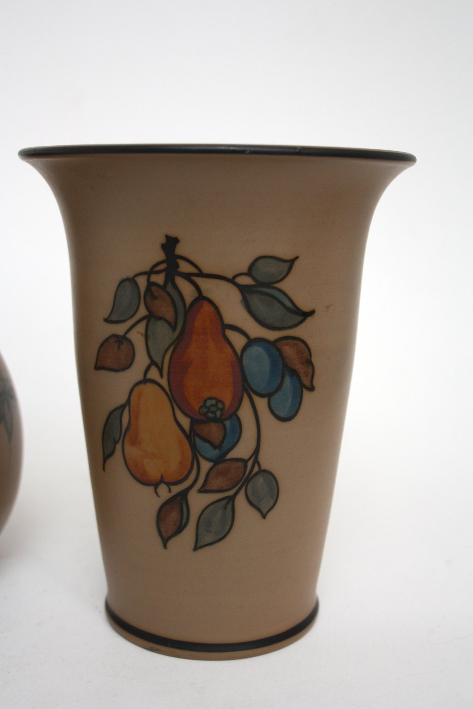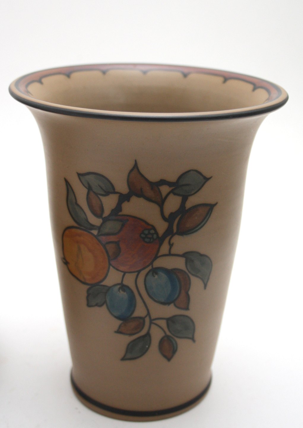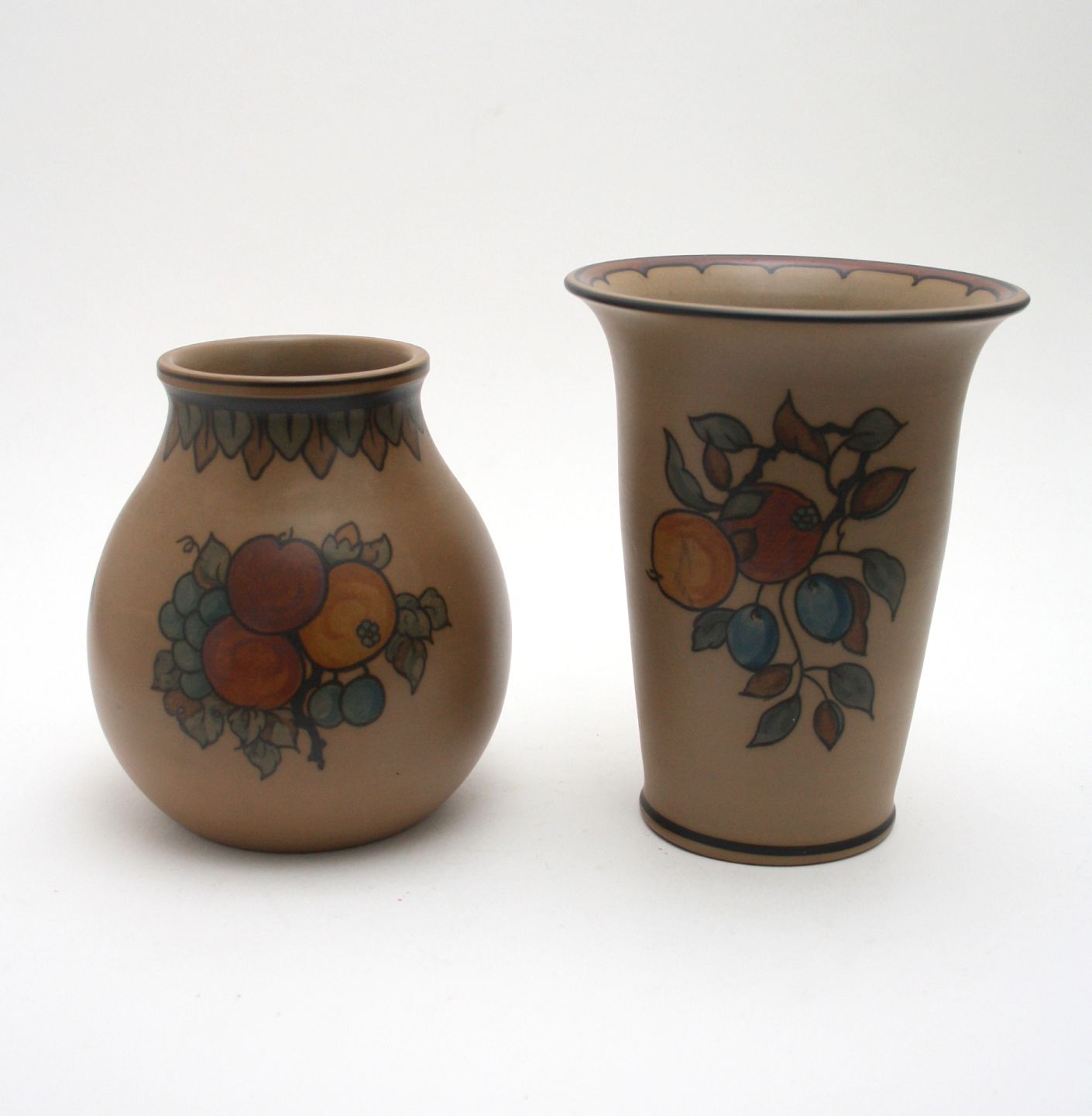 L. Hjorth, Bornholm vaser i brun mat glasur med frugtmotiver.