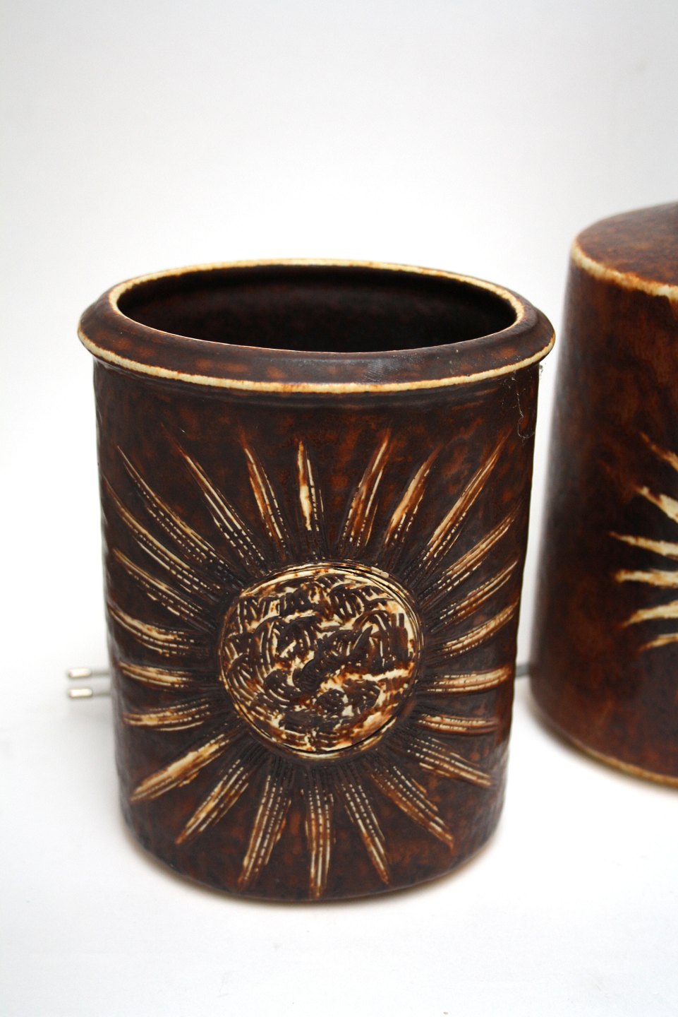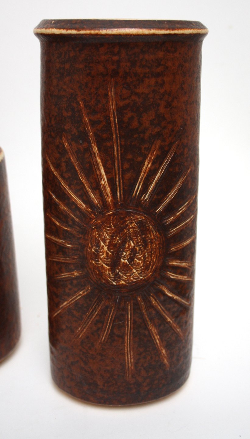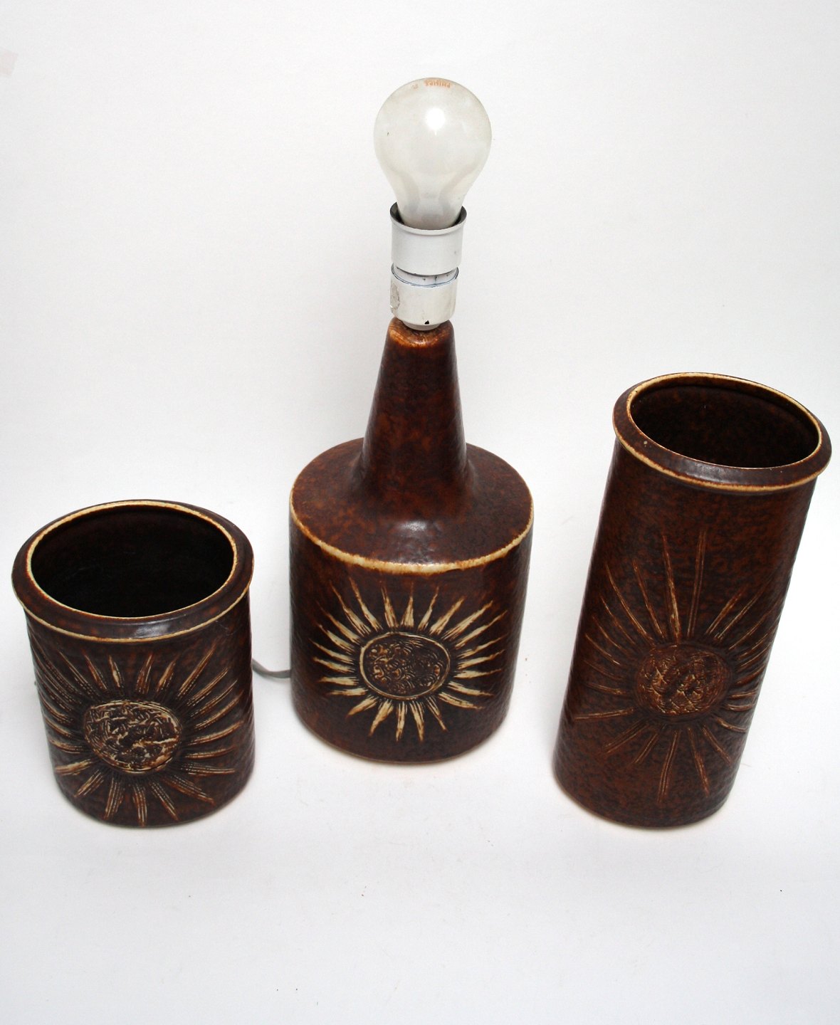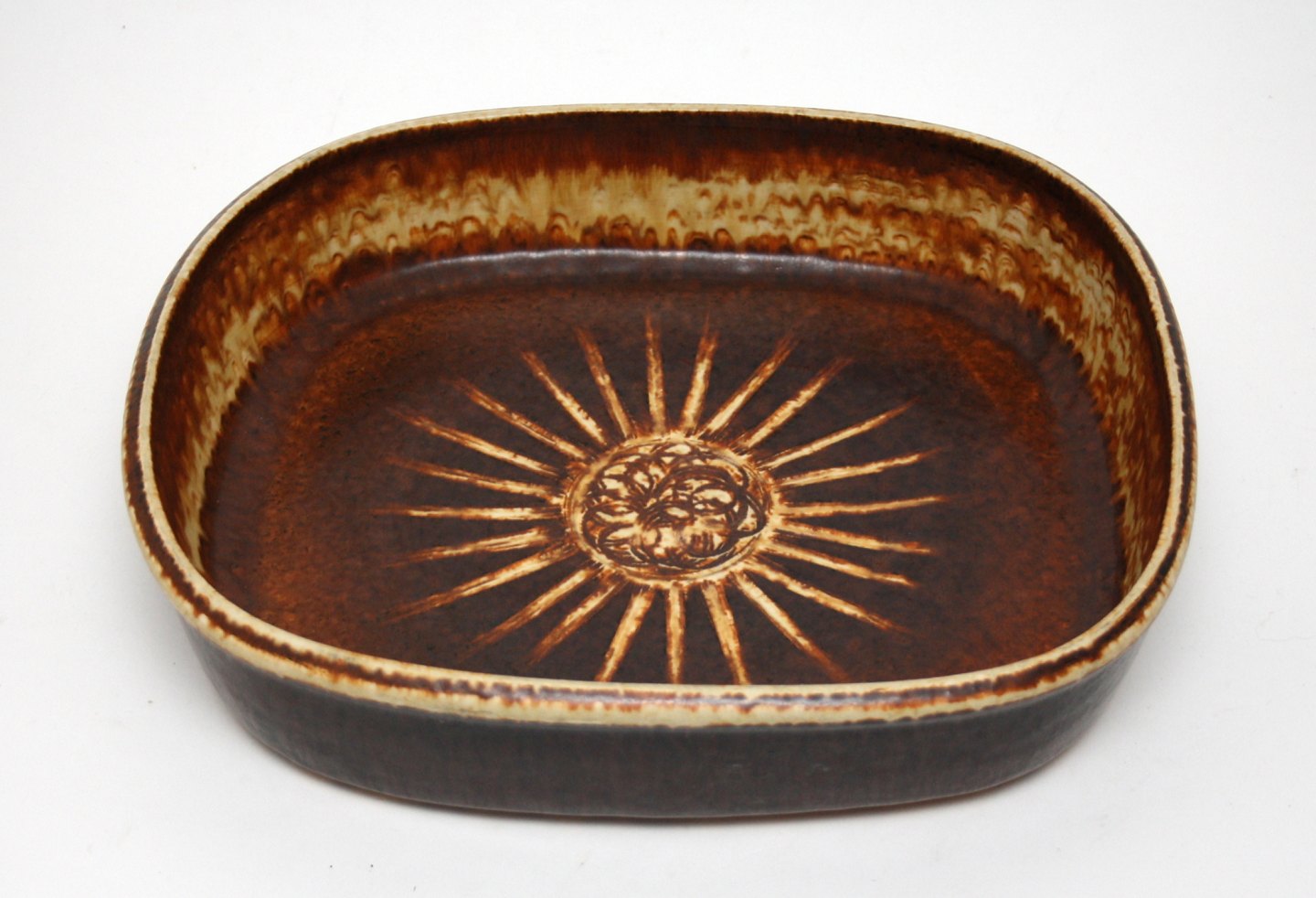 Søholm stentøj, brunglaseret serie med solmotiv.