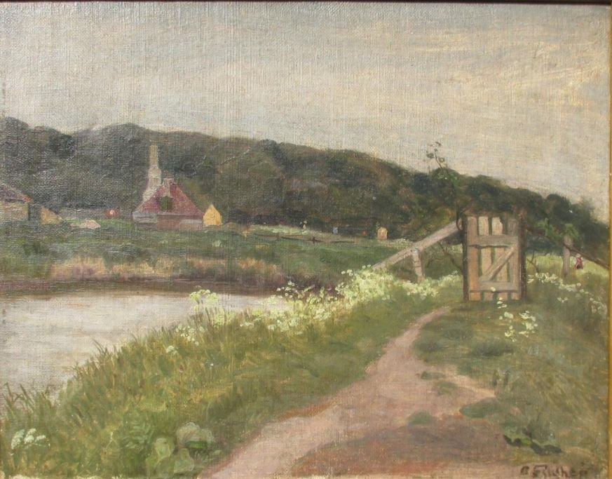 Fischer, Carl (1887 - 1962) Danmark: Landskab med personer.