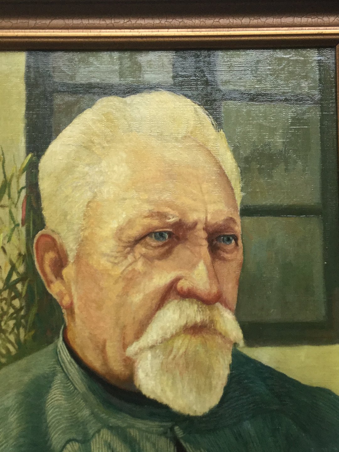 Maleri - portræt af ældre mand ved hus.