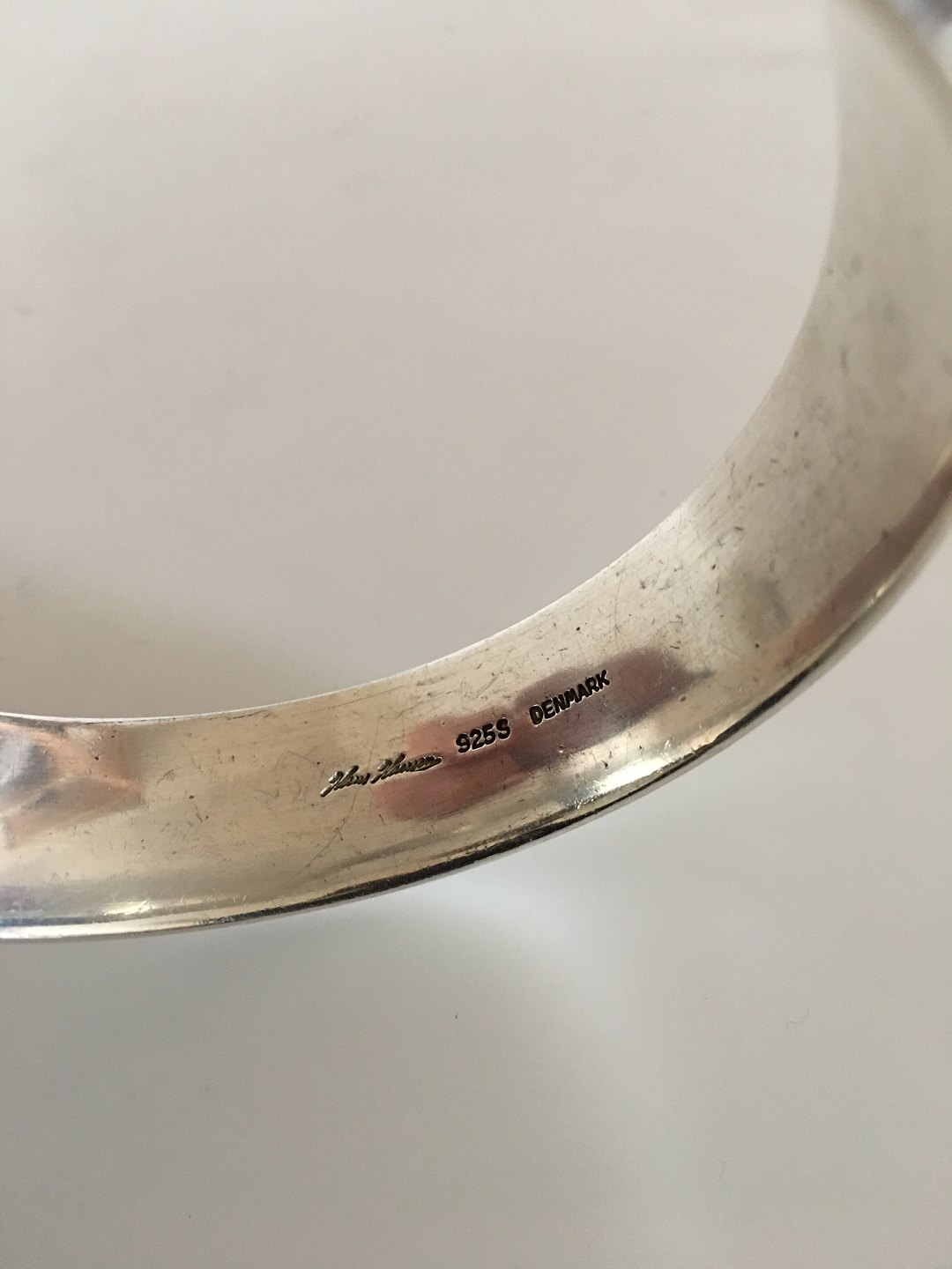 Hans Hansen Sterling Silver Bangle/Bracelet. Measures: Inner Diameter 6.4 cm / 2 23/64", Width 1.6 cm / 0 5/8". Weighs 62 g / 2.20 oz.