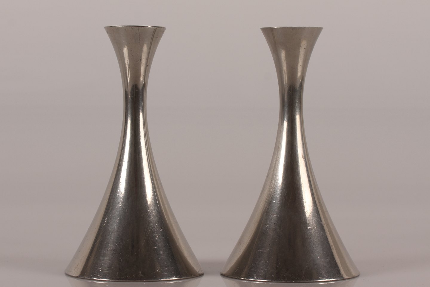 Par lysestager af patineret tin