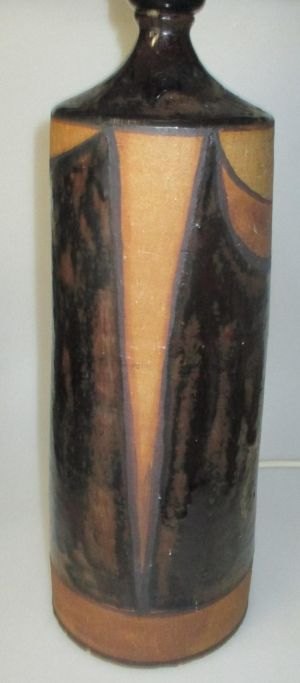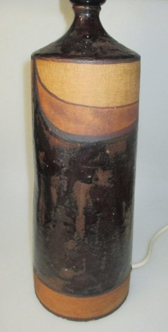 Boel, Karen (20. årh.) Danmark: Bordlampe. Keramik. Med mørk glasur. Højde: 34 cm uden fatning. Ustemplet.
