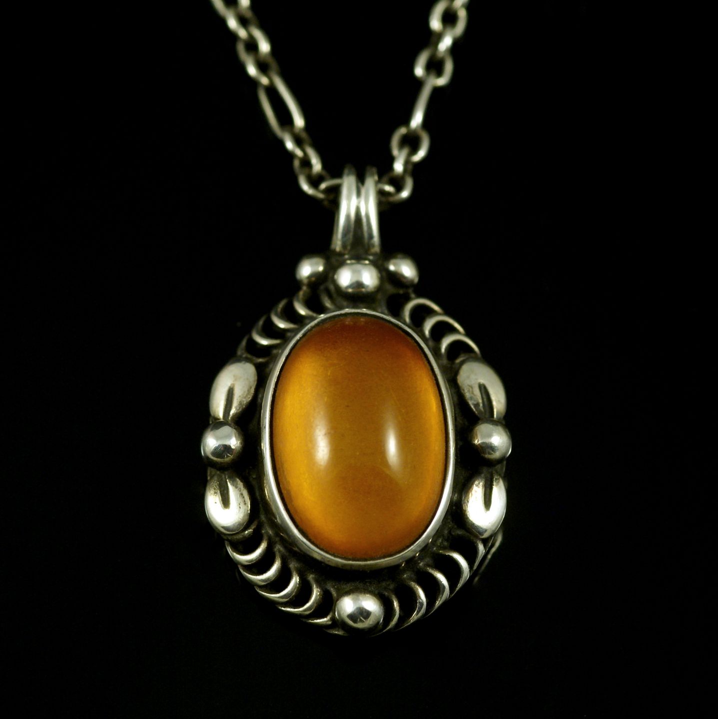 Georg Jensen Sterling Silver Pendant of the Year 1995 with Amber - Heritage