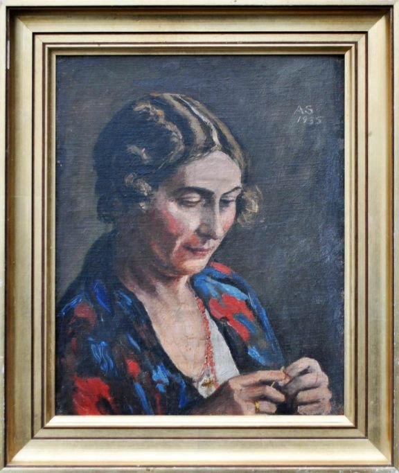 Søeborg, Axel (1872 - 1939) Denmark: Portrait. Oil on canvas / wood. Signed: Monogram AS 1935. 31 x 25 cm. Framed.