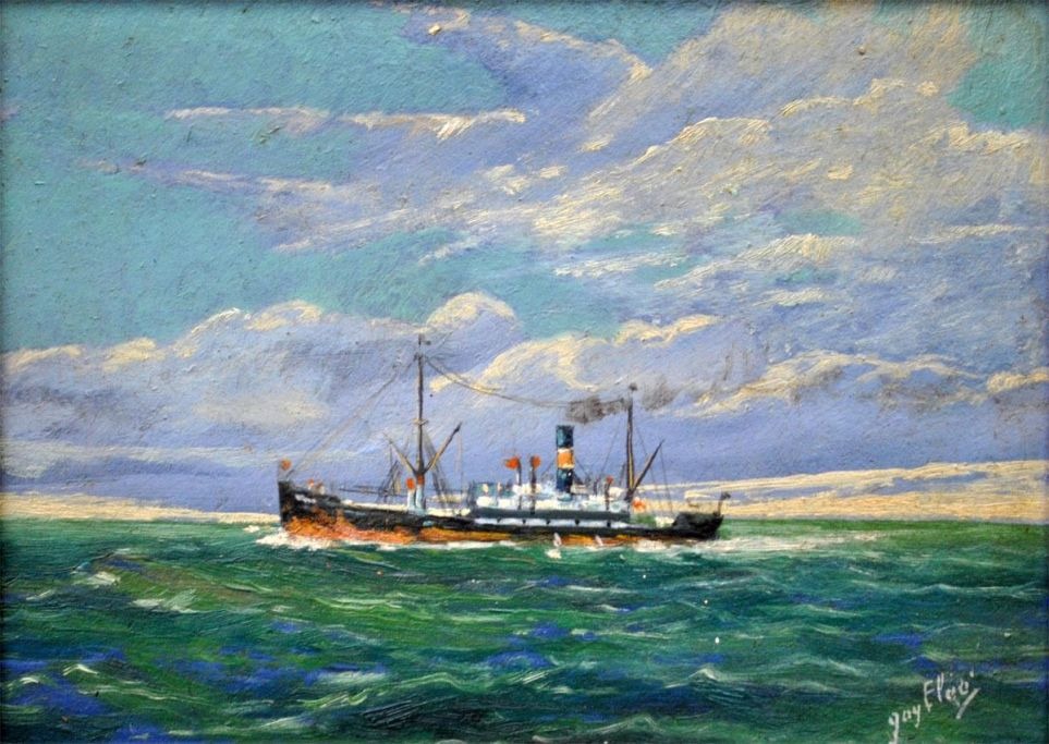 Ubekendt kunstner (20. årh.): Skibs portræt. Olie på plade. Signeret.: Gay El.. 19 x 26 cm.