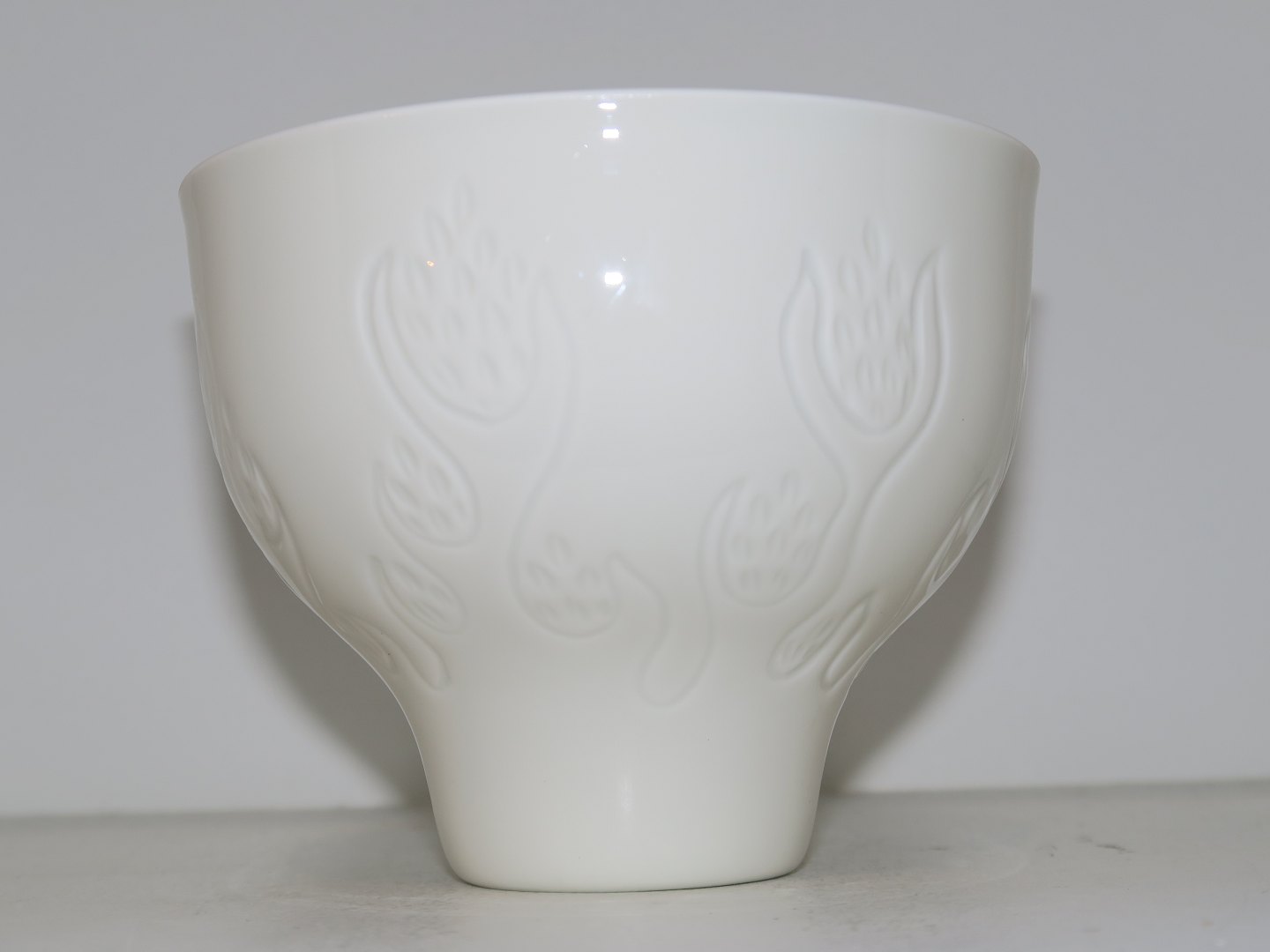 Royal Copenhagen blanc de chine porcelain, bowl with trees in relief pattern.