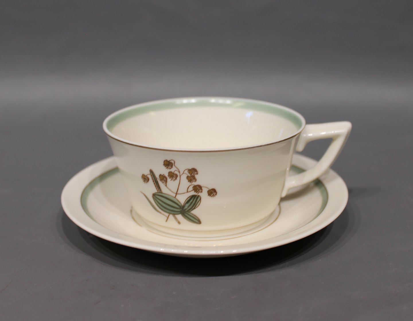 Royal porcelain Hjertegræs, coffee cup, no.: 884/9481, tea cup no.: 884/9536, cream jug no.: 884/9726 and sugar bowl no.: 884/9955.