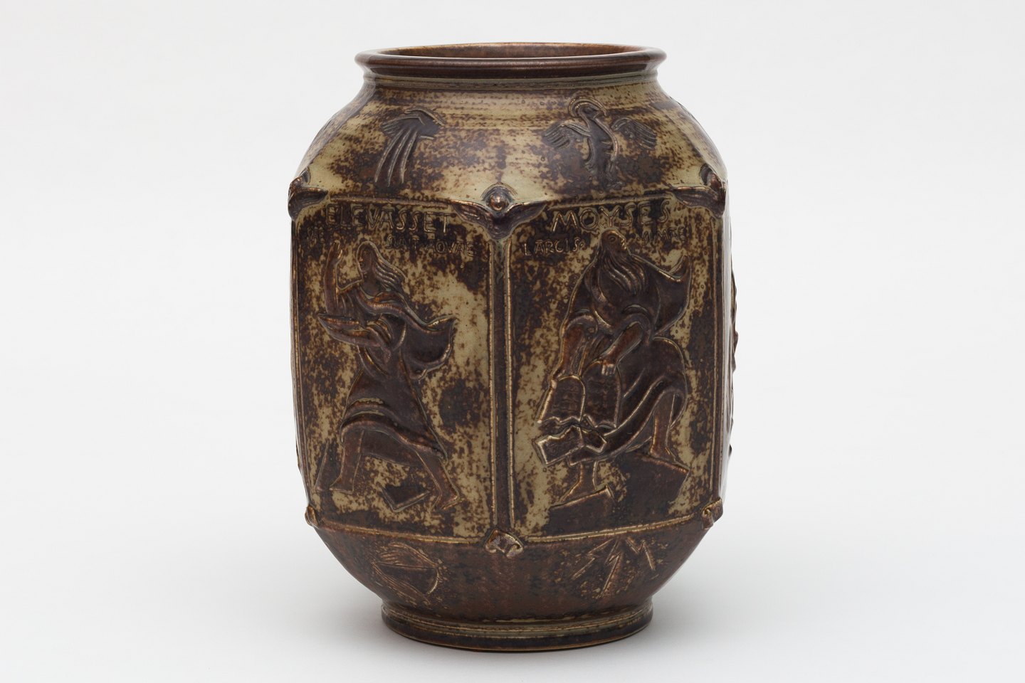 Kolossal gulvvase i stentøj m. brun glasur. Modelnr. 222.