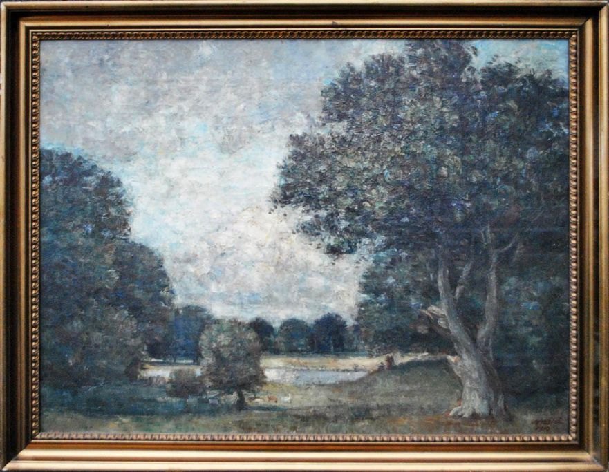 Møhl-Hansen, Kristian (1876 - 1962) Denmark: People in park. Oil on canvas. Signed: Möhl 1910. 48 x 63 cm.