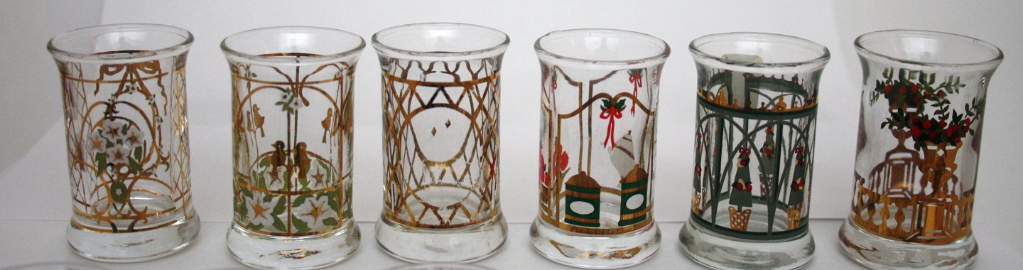 Holmegaard, Juledram glas der hører til julekaraflerne. De fleste af årene er der udgivet 2 forskellige glas pr. år. Der er ikke foto af alle. Pris: 50 kr. stk.